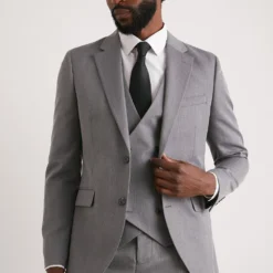 Burton Slim Fit Grey Mini Herringbone Suit Jacket