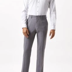Burton Slim Fit Grey Mini Herringbone Suit Trousers