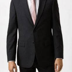 Burton Slim Fit Double Breasted Light Grey Textured Suit Jacket