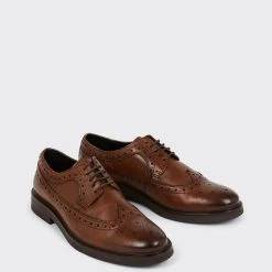 Burton Dark Tan 1904 Leather Plain Oxford Shoes