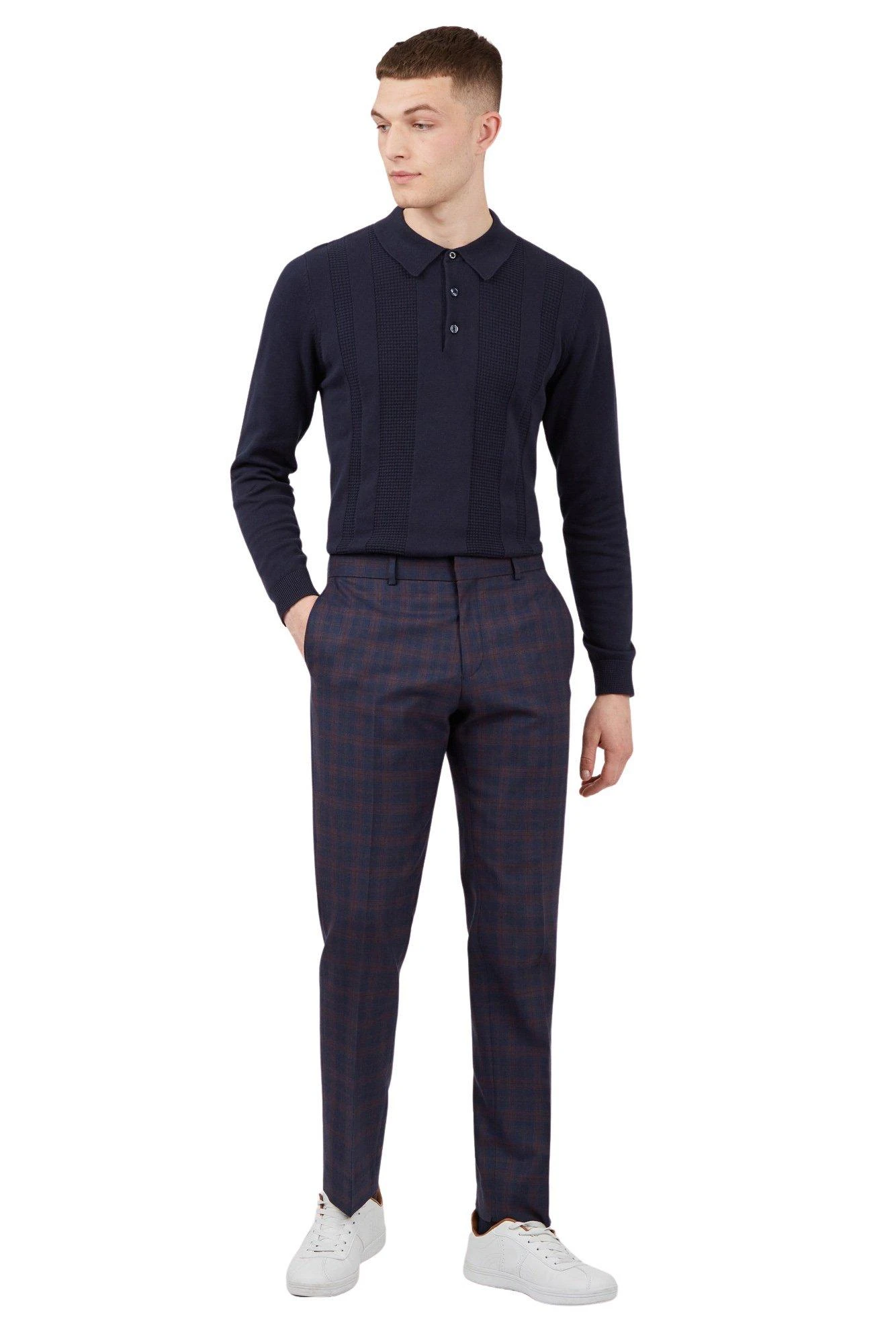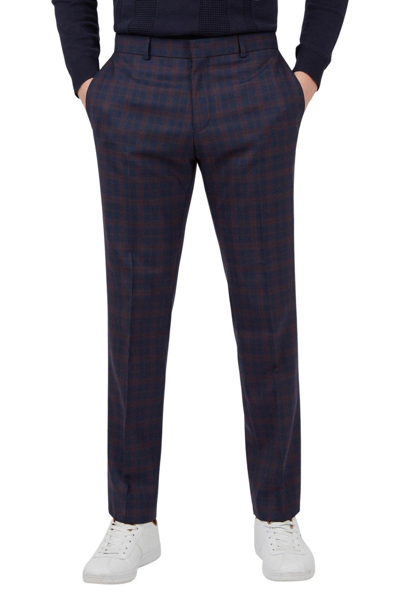 Classic Suit Trousers by Ben ShermanDeep blue slim fit suit trousers with a rust check from the Ben Sherman range. With a flat front, these trendy suit trousers are designed for the fashion conscious. Perfect for any outfit, these suit trousers are a staple feature for every man’s wardrobe. Pair with the matching suit jacket for the full outfit.