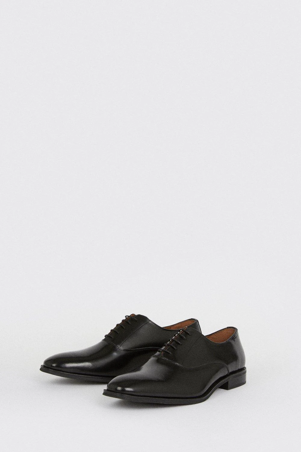 Step into style. Our new season shoes include something for every occasion. If you’re looking for something smart opt for classic black oxford brogue or classic tan derby, or keep things casual with leather smart trainers and formal slip on styles. Explore our formal collection of brogue, Oxford and derby shoes for every occasion. Style: Black 1904 Leather Plain Oxford Shoes. Ideal for: Smart. Fit: Regular. Design: Plain. Model wears size UK 10 and is 5′ 9″ tall. This garment is READY FOR THE FUTURE.We are working towards sourcing our animal-derived products following industry best practice. This means wool, feather and down certified to high animal welfare standards, and leather from tanneries that are working to reduce their environmental impact.Find out more about our sustainability guidelines and goals.