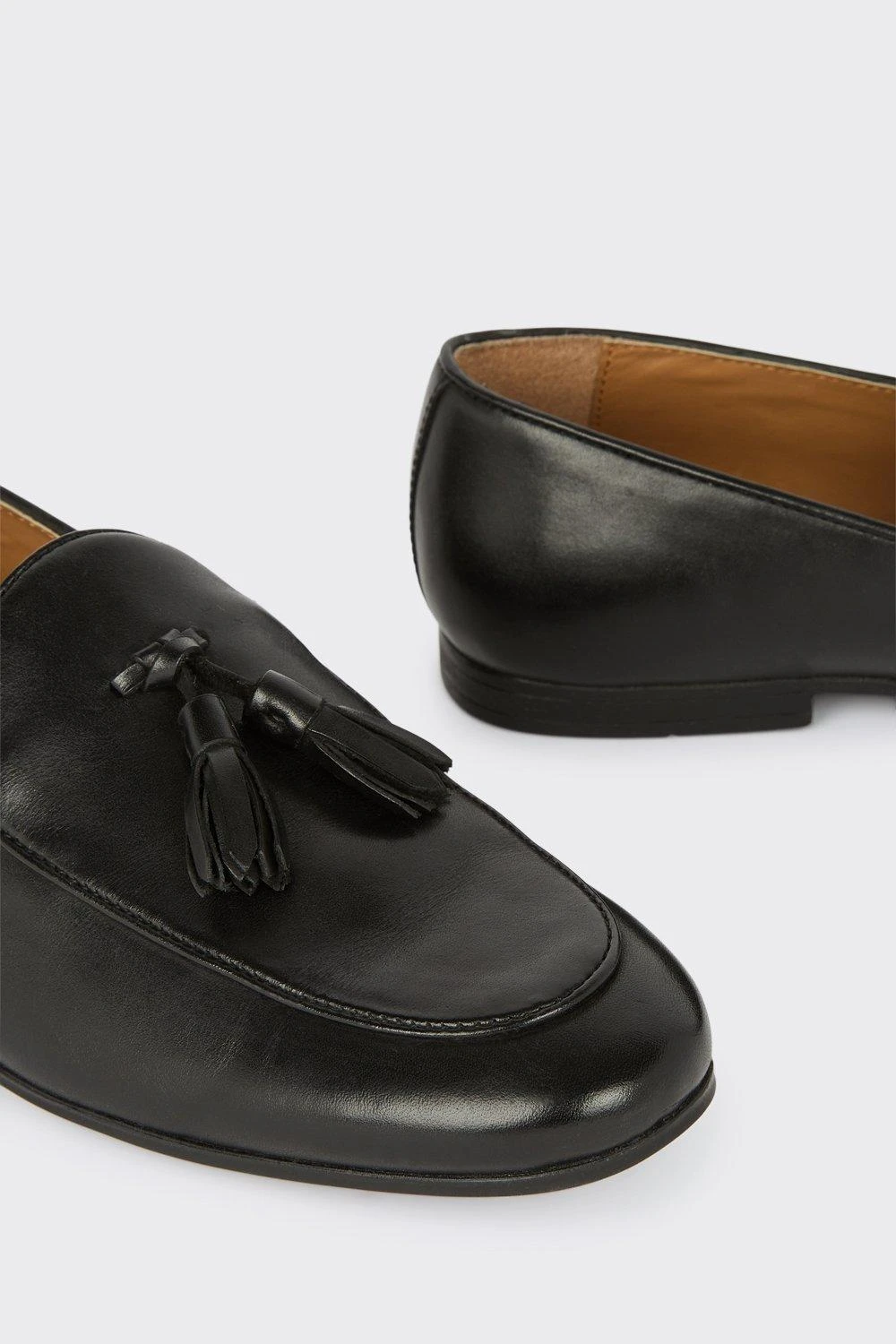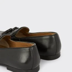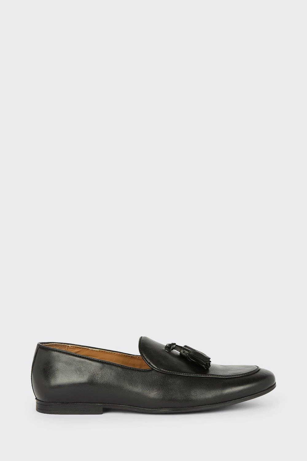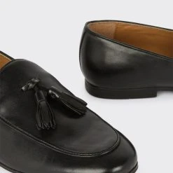 Step into style. Our new season shoes include something for every occasion. If you’re looking for something smart opt for classic black oxford brogue or classic tan derby, or keep things casual with leather smart trainers and formal slip on styles. Explore our formal collection of brogue, Oxford and derby shoes for every occasion.Style: Black Leather Smart Tassel LoafersFit: RegularIdeal for: SmartDesign: Tassel DetailThis garment is READY FOR THE FUTURE.We are working towards sourcing our animal-derived products following industry best practice. This means wool, feather and down certified to high animal welfare standards, and leather from tanneries that are working to reduce their environmental impact.Find out more about our sustainability guidelines and goals.