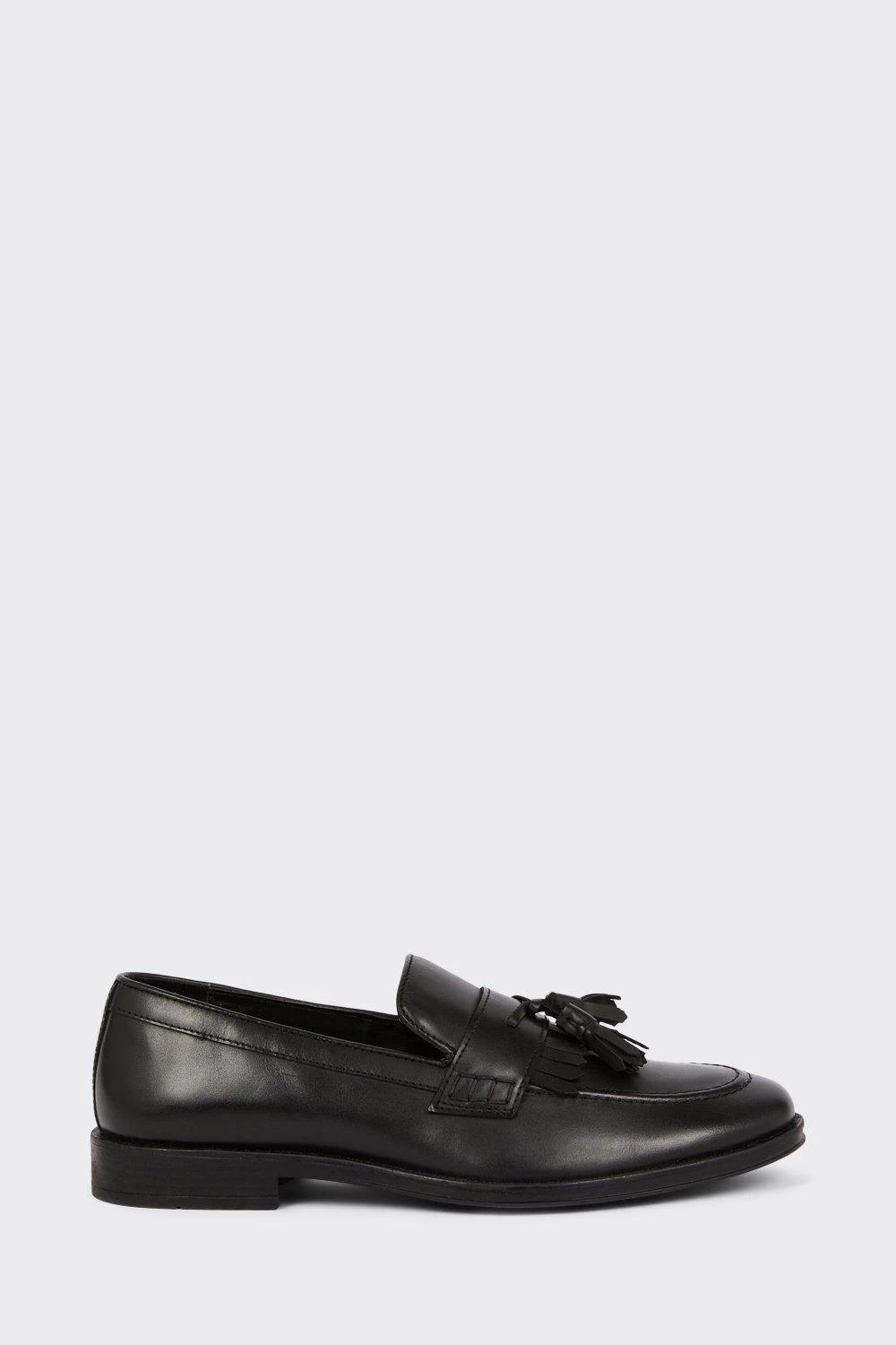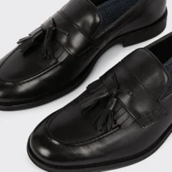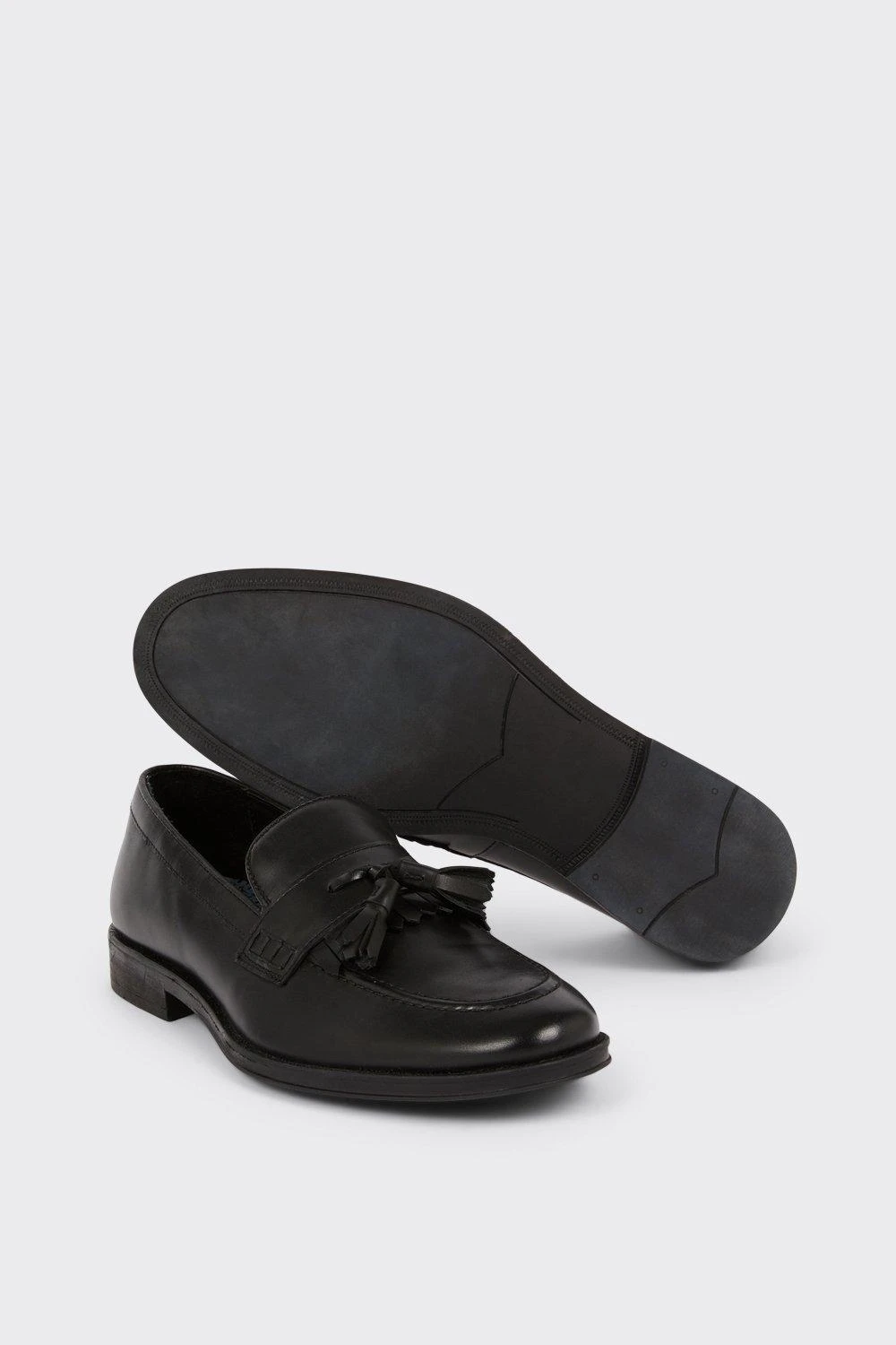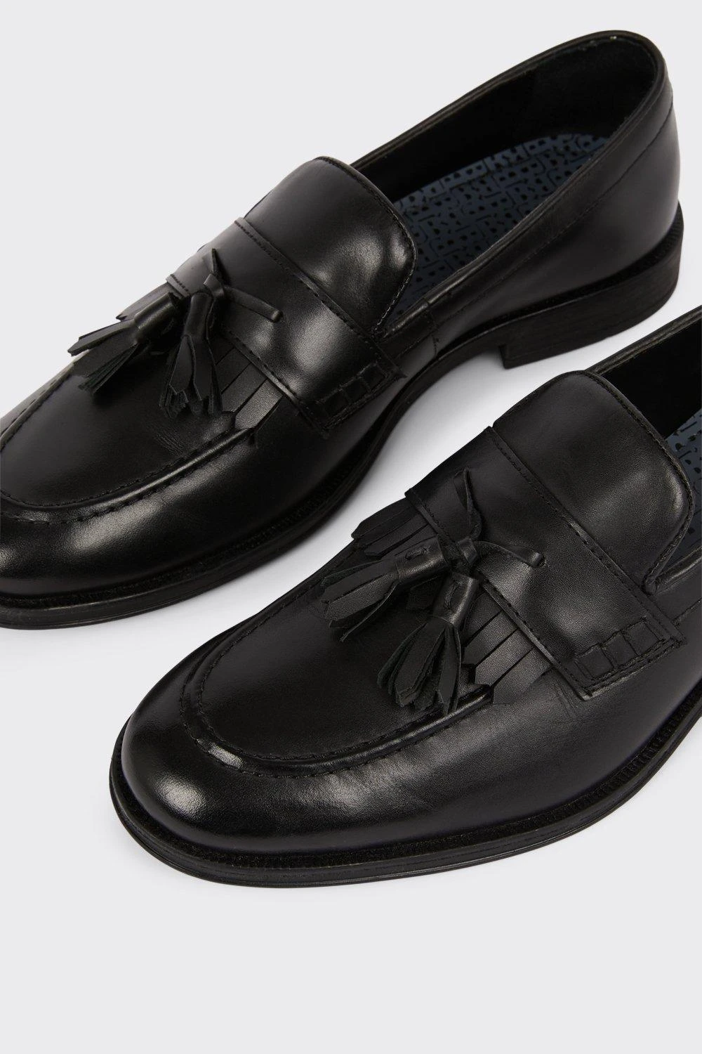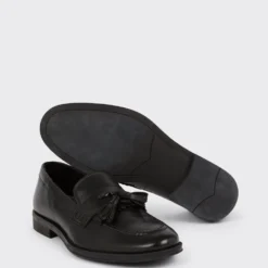 Step into style. Our new season shoes include something for every occasion. If you’re looking for something smart opt for classic black oxford brogue or classic tan derby, or keep things casual with leather smart trainers and formal slip on styles. Explore our formal collection of brogue, Oxford and derby shoes for every occasion.Style: Black Leather Smart Tassel Slip On LoafersFit: RegularIdeal for: SmartDesign: Tassle Detail