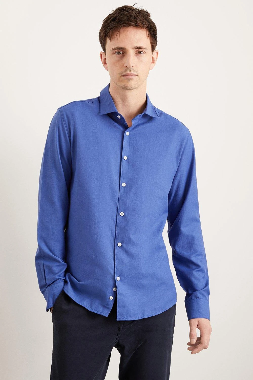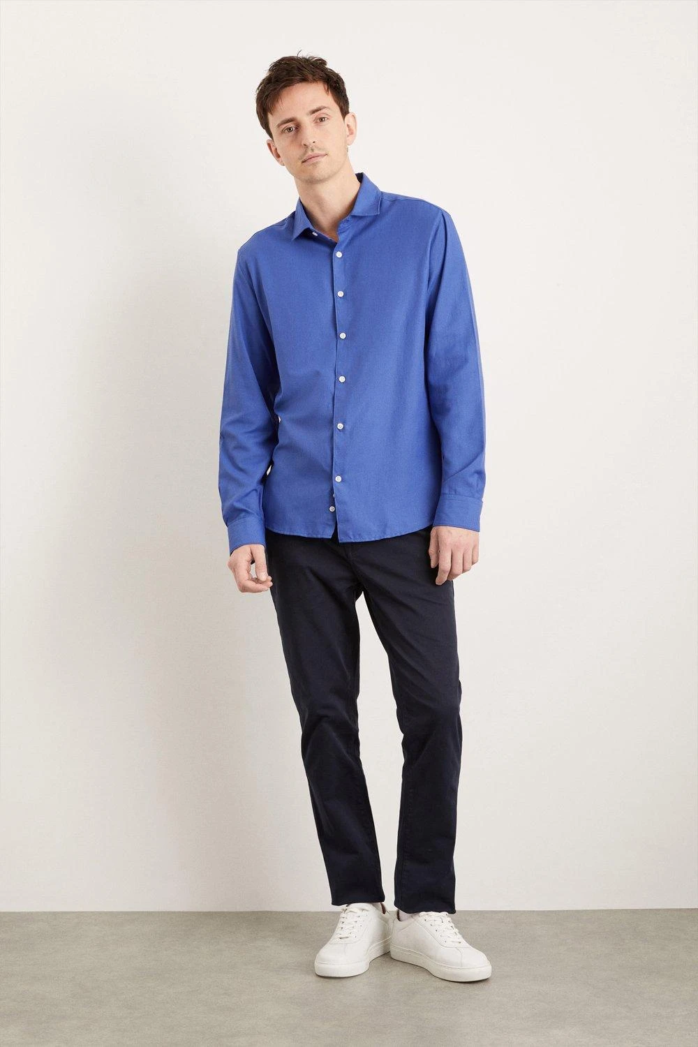 Presented in slim, skinny and tailored fit and available in a wide range of collar sizes, our collection of formal shirts has something for every style and occasion. Choose from a variety of textures herringbone, twill or poplin for an extra-special touch. Style: Blue Long Sleeve Slim Basket Weave Smart Shirt. Ideal for: Smart. Fit: Regular. Design: Collar. Model wears size UK 10 and is 5′ 9″ tall.