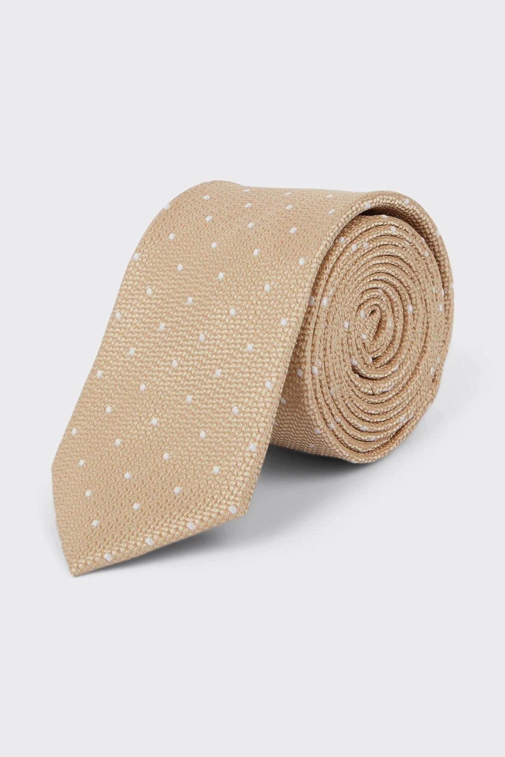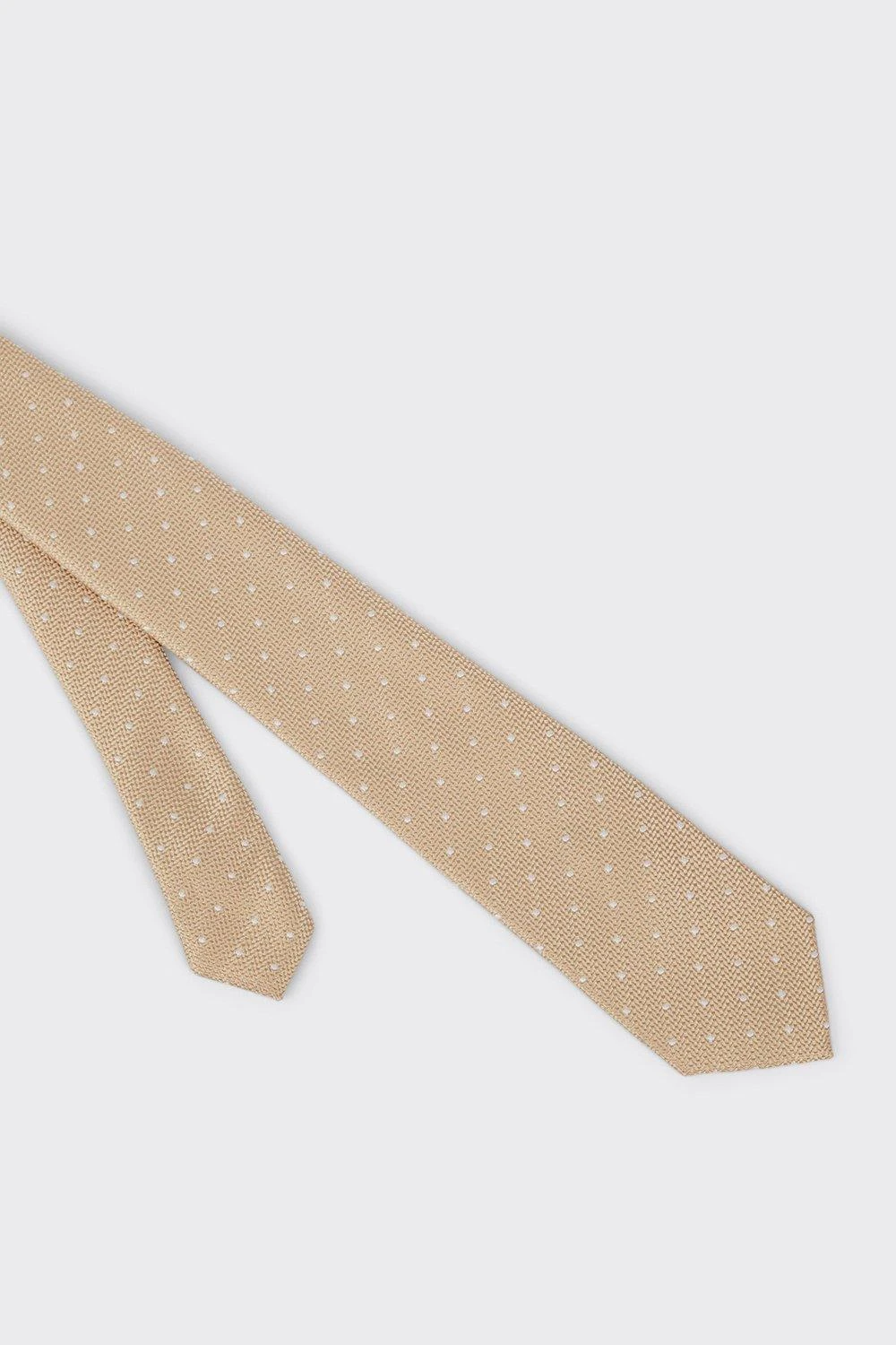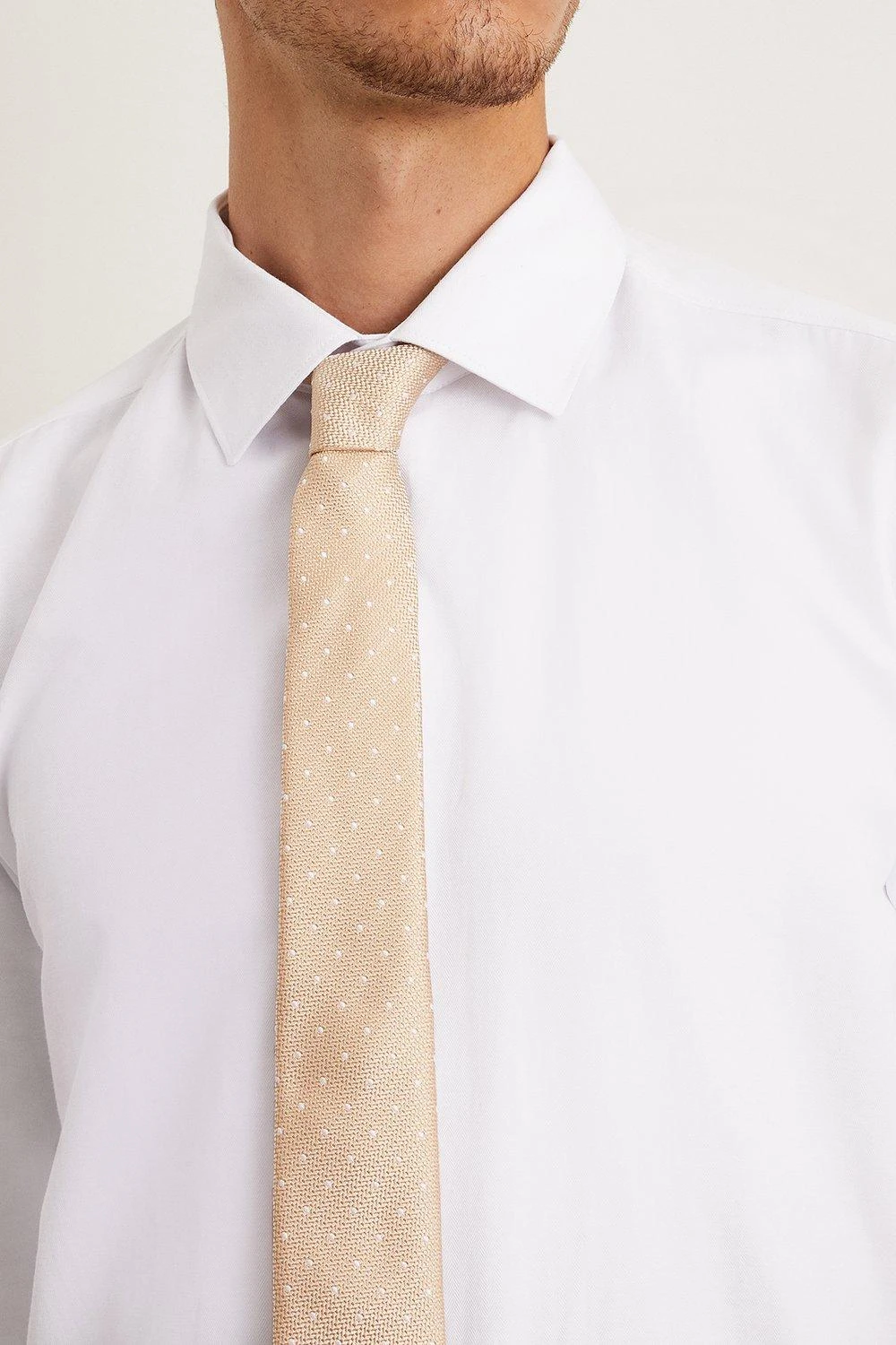 Complete the look with our collection of suit accessories. From classic bow ties, to lapel pins to braces and cuff links we’ve got everything you need to take suiting to the next level. Style: Champagne Slim Tonal Spot Tie. Ideal for: Smart. Model wears size UK 10 and is 5′ 9″ tall.