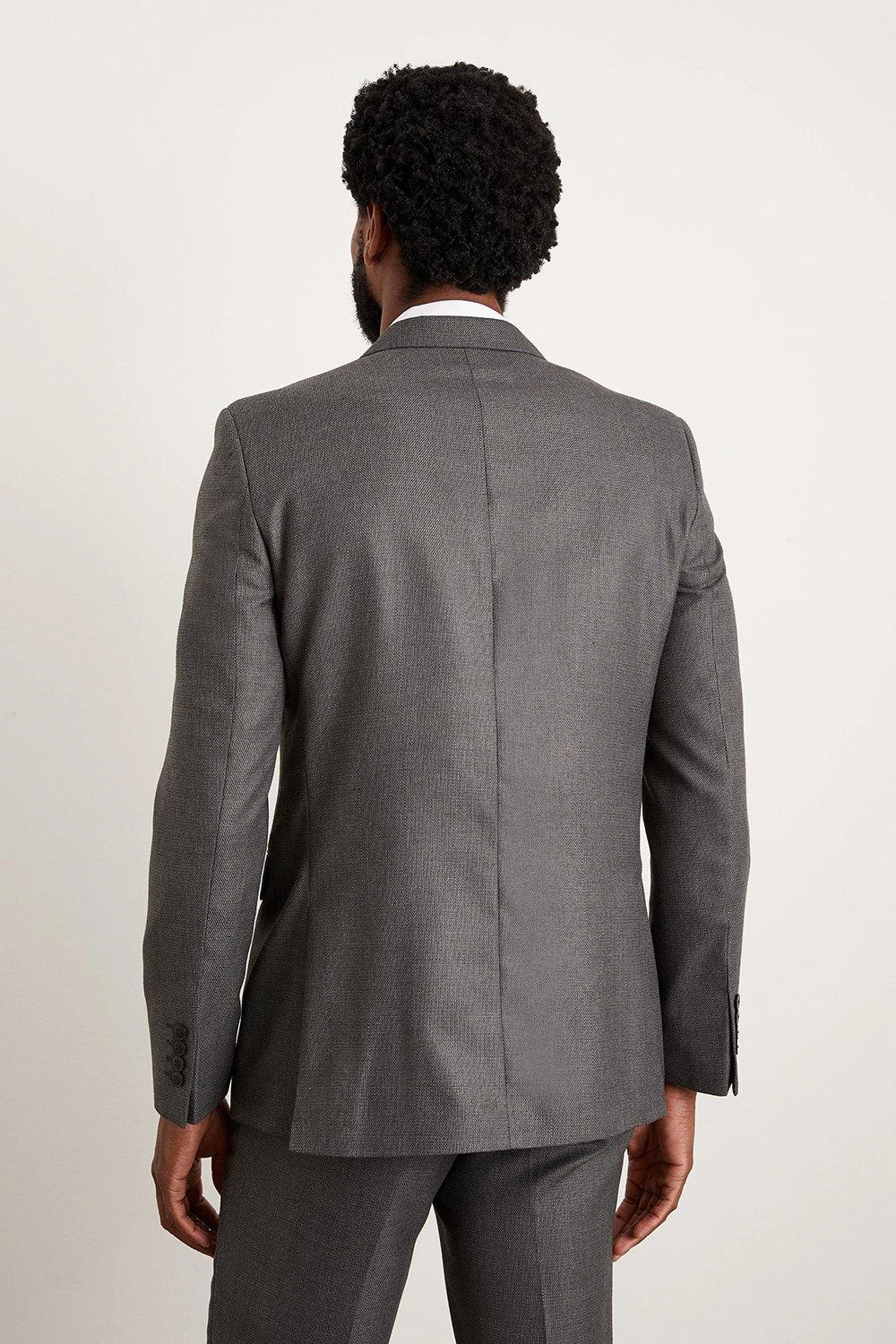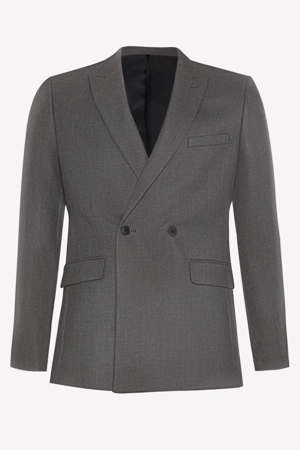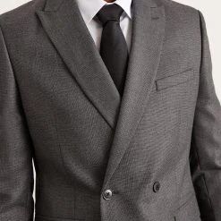 Burton Double Breasted Charcoal Wide Self Stripe Suit Jacket