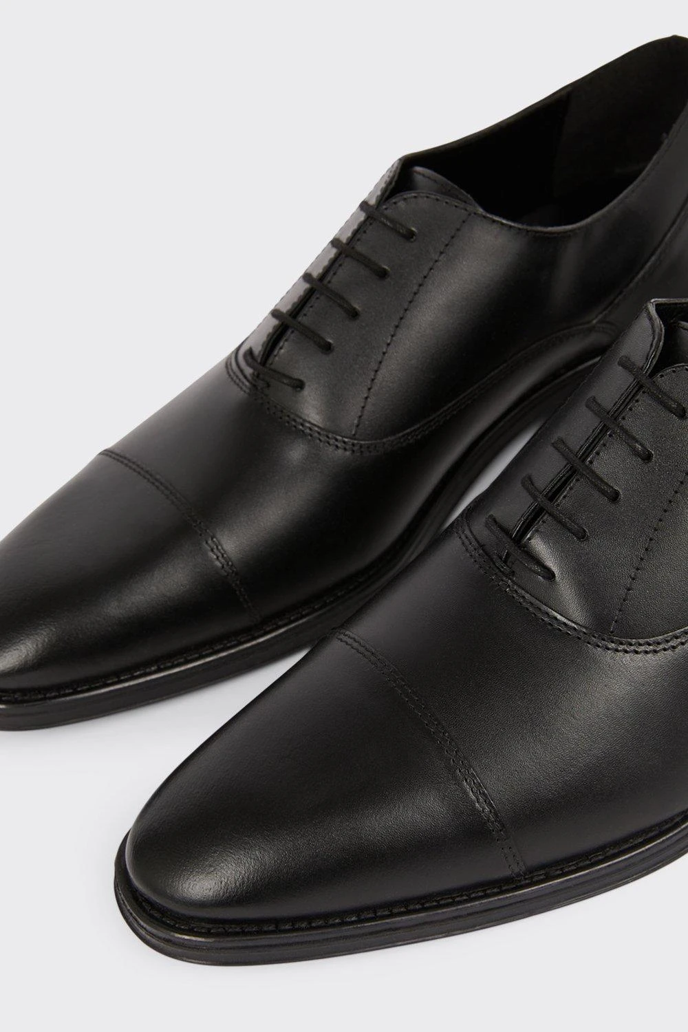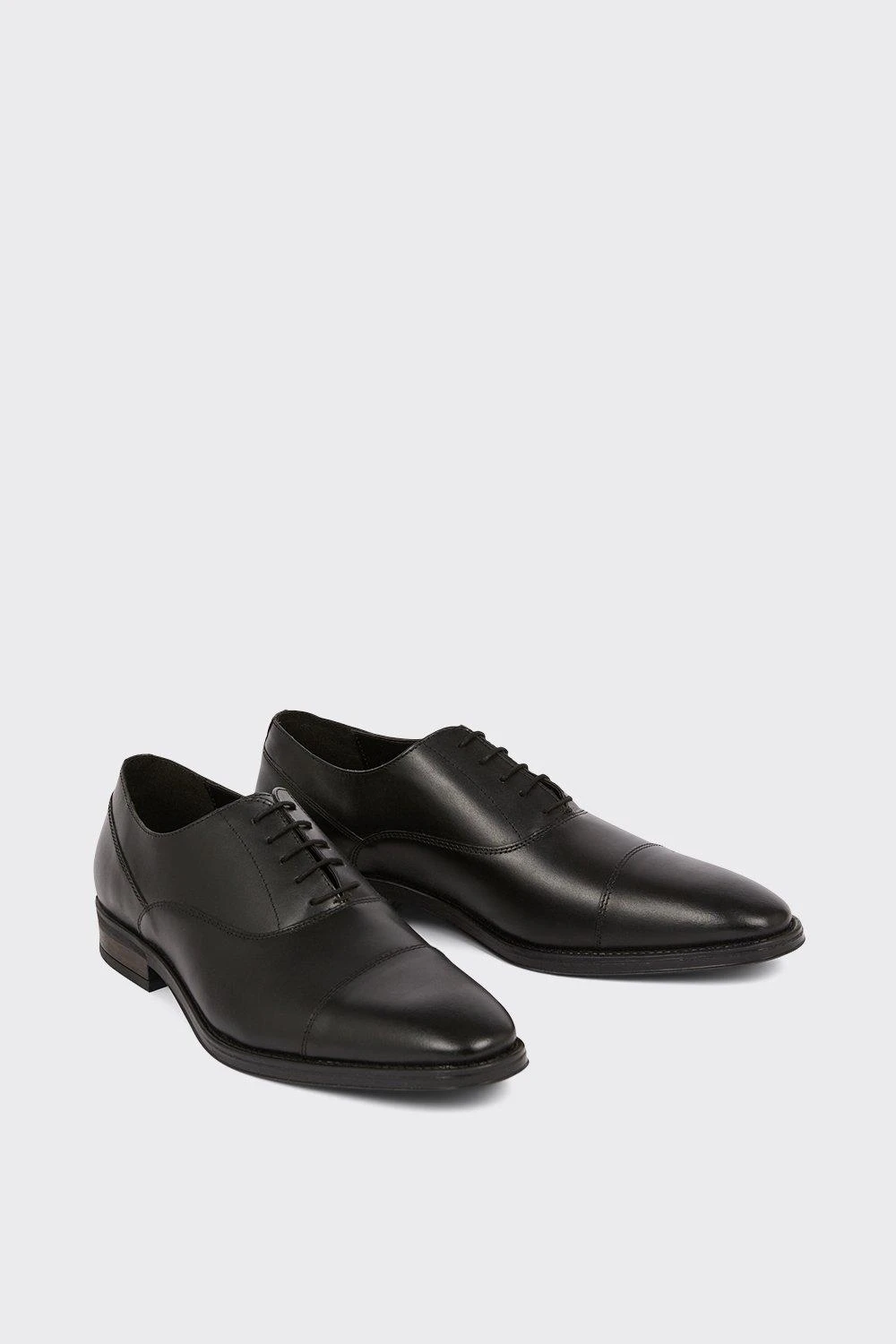 Step into style. Our new season shoes include something for every occasion. If you’re looking for something smart opt for classic black oxford brogue or classic tan derby, or keep things casual with leather smart trainers and formal slip on styles. Explore our formal collection of brogue, Oxford and derby shoes for every occasion.Style: Leather Smart Black Oxford Toe Cap ShoesFit: RegularIdeal for: SmartDesign: Lace Up
