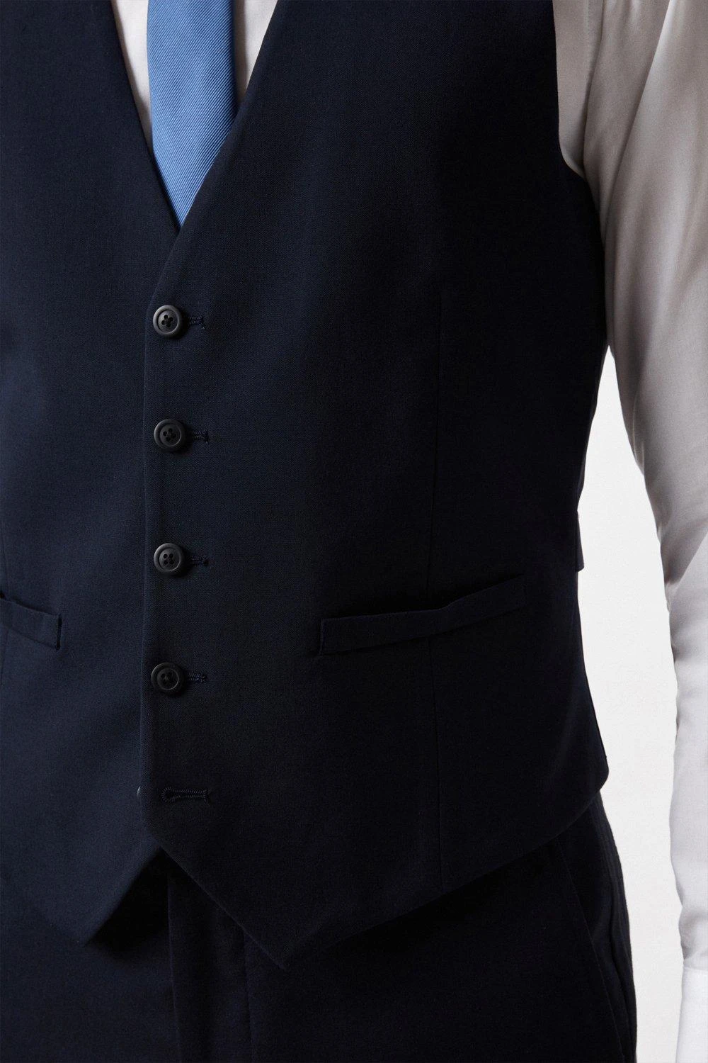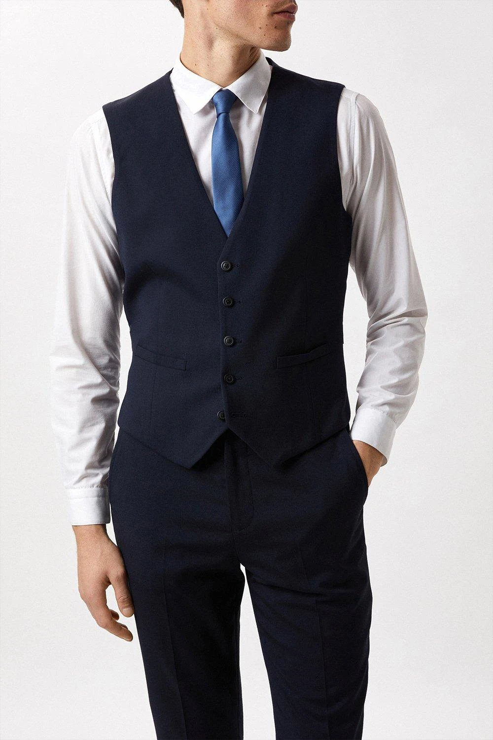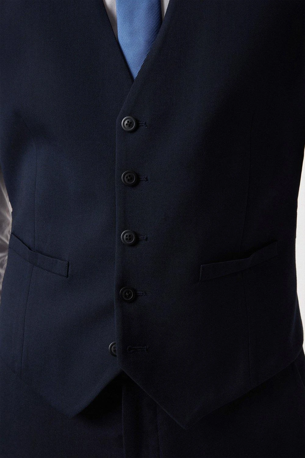 Part of our plus range of suits, this 3 piece suit sits under our Essentials collection. This waistcoat comes in a comfortable fabric in navy and a perfect tailored fit. Featuring 5 buttons single breasted front fastening and adjustable strap at the back.Style: Plus And Tall Navy Tailored Essential WaistcoIdeal for: Smart