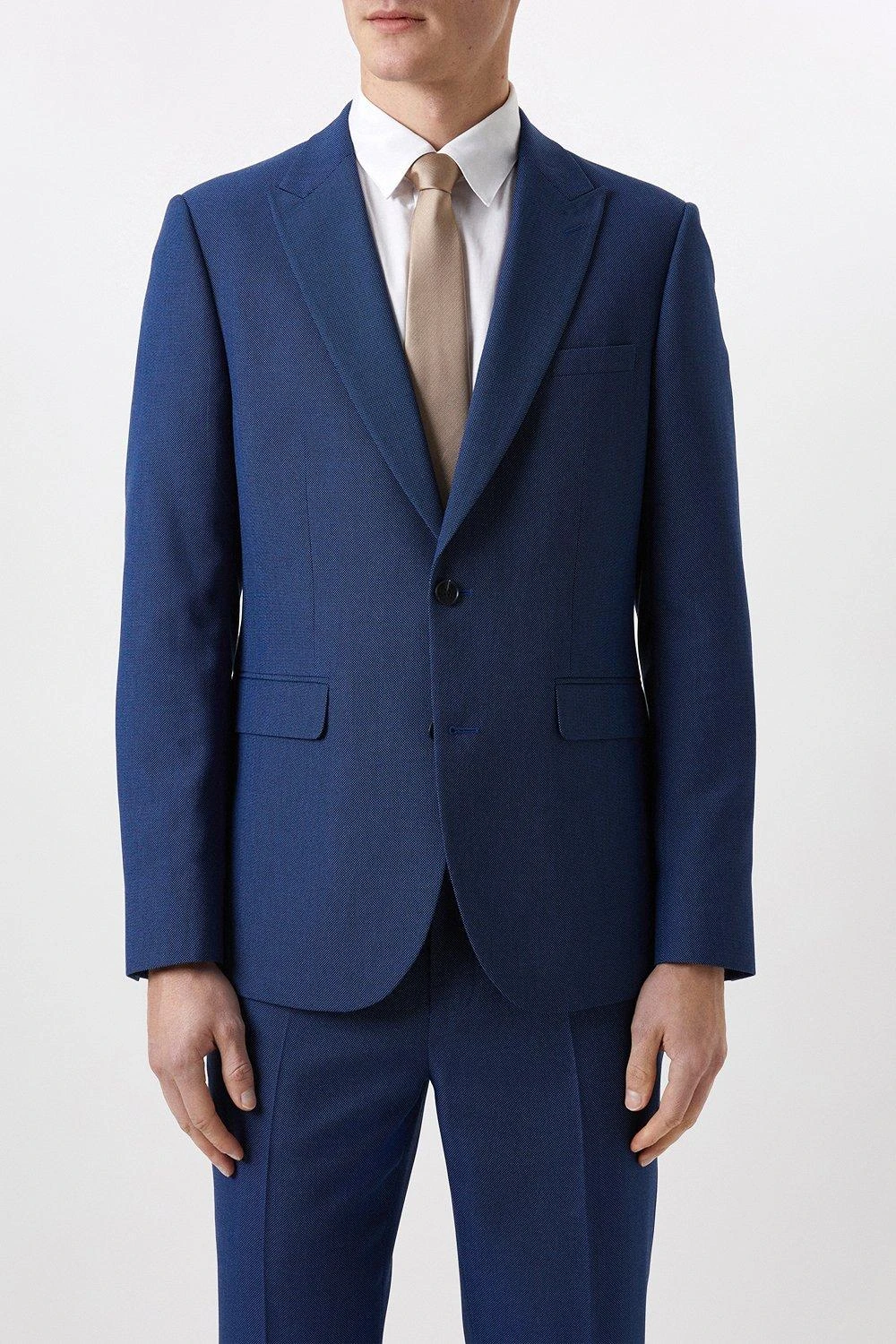 Burton Plus And Tall Slim Fit Blue Birdseye Suit Jacket