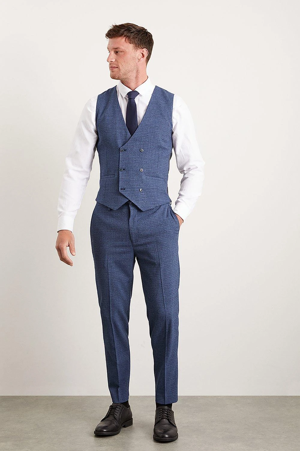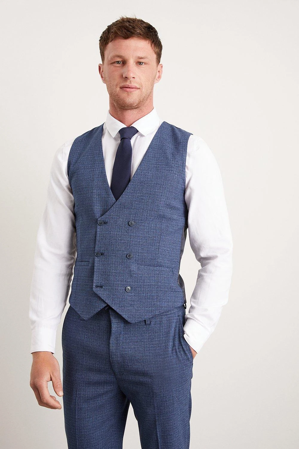 Established back in 1904, we’ve been providing you with great British style and timeless tailoring ever since. Featuring single and double breasted styles as well as classic and modern fits and patterns, our collection of mens suits will keep you on-trend with sharp tailoring, from season to season. Whether you’re suiting up for important meetings or you’ve got a special occasion coming up, we’ve got you sorted.Style: Skinny Blue Semi Plain WaistcoatLength: Approx. 59cmFit: SkinnyIdeal for: Smart