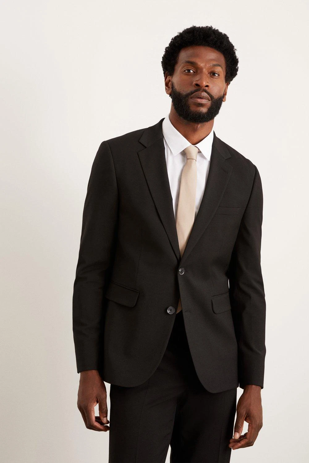 Established back in 1904, we’ve been providing you with great British style and timeless tailoring ever since. Featuring single and double breasted styles as well as classic and modern fits and patterns, our collection of mens suits will keep you on-trend with sharp tailoring, from season to season. Whether you’re suiting up for important meetings or you’ve got a special occasion coming up, we’ve got you sorted. Style: Skinny Fit Black Essential Suit Jacket. Ideal for: Smart. Fit: Skinny. Design: Plain. Model wears size UK 10 and is 5′ 9″ tall. This garment is READY FOR THE FUTURE.Recycled fibres can be used for a number of materials including polyester, cotton and acrylic. They are a more sustainable alternative, as they take less energy, land and water to make than virgin fibres, and are often derived from products that would otherwise have gone to wasteFind out more about our sustainability guidelines and goals.