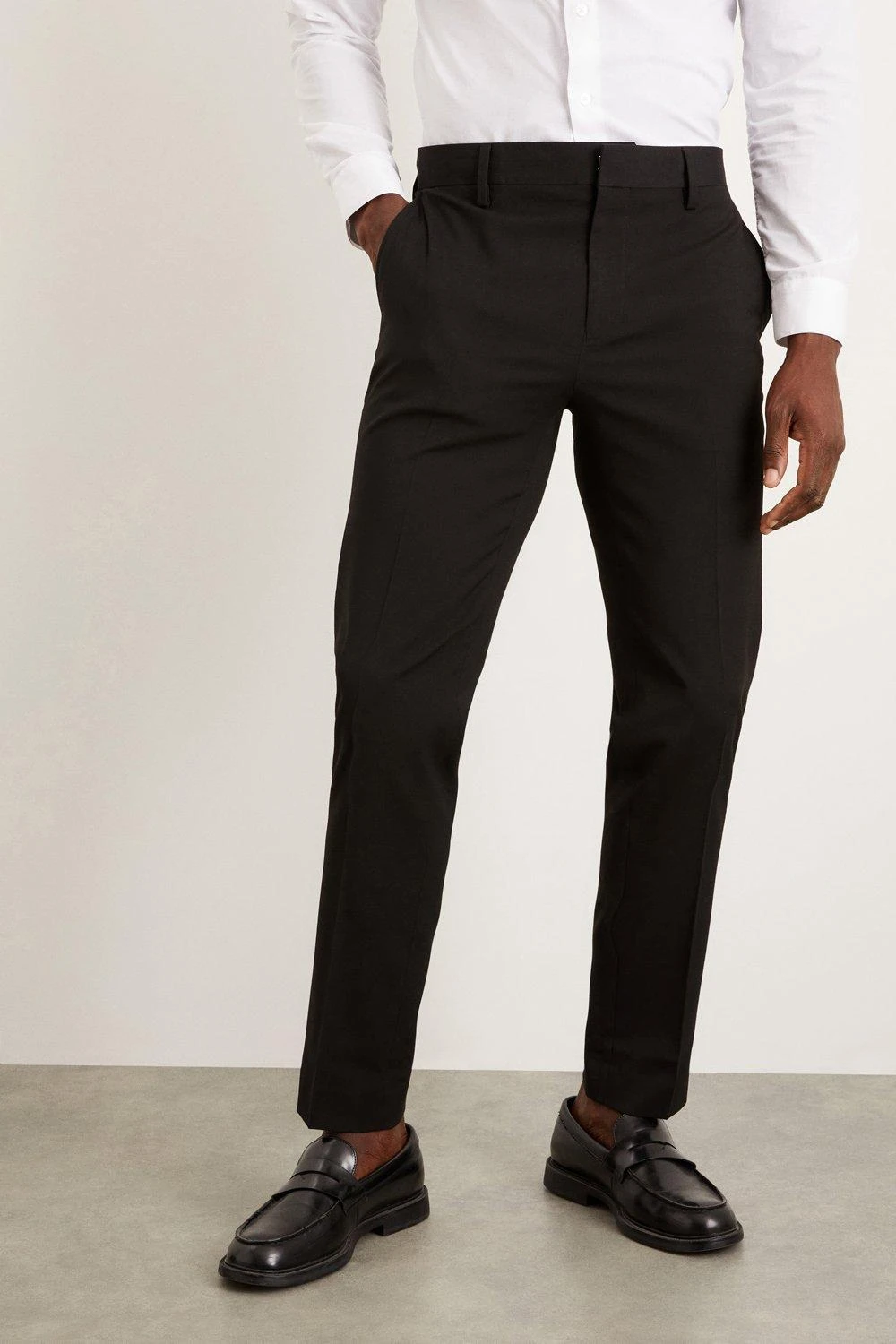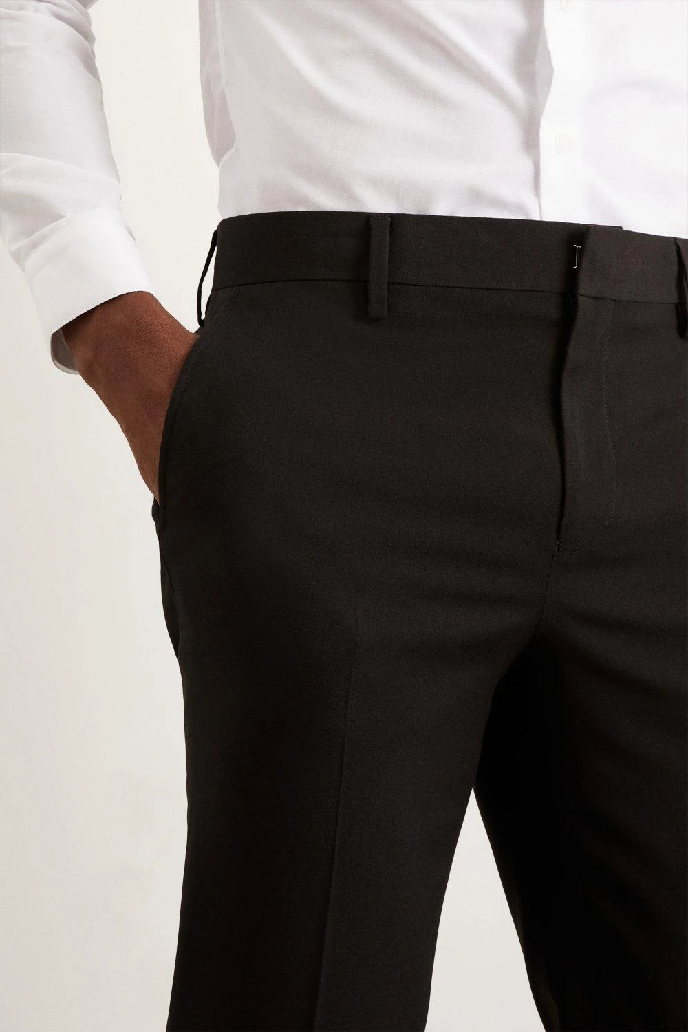 Established back in 1904, we’ve been providing you with great British style and timeless tailoring ever since. Featuring single and double breasted styles as well as classic and modern fits and patterns, our collection of mens suits will keep you on-trend with sharp tailoring, from season to season. Whether you’re suiting up for important meetings or you’ve got a special occasion coming up, we’ve got you sorted. Style: Skinny Fit Black Essential Suit Trousers. Ideal for: Smart. Fit: Skinny. Design: Plain. Model wears size UK 10 and is 5′ 9″ tall. This garment is READY FOR THE FUTURE.Recycled fibres can be used for a number of materials including polyester, cotton and acrylic. They are a more sustainable alternative, as they take less energy, land and water to make than virgin fibres, and are often derived from products that would otherwise have gone to wasteFind out more about our sustainability guidelines and goals.