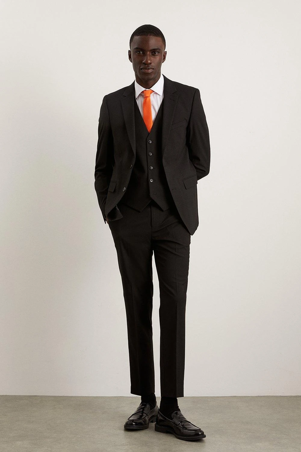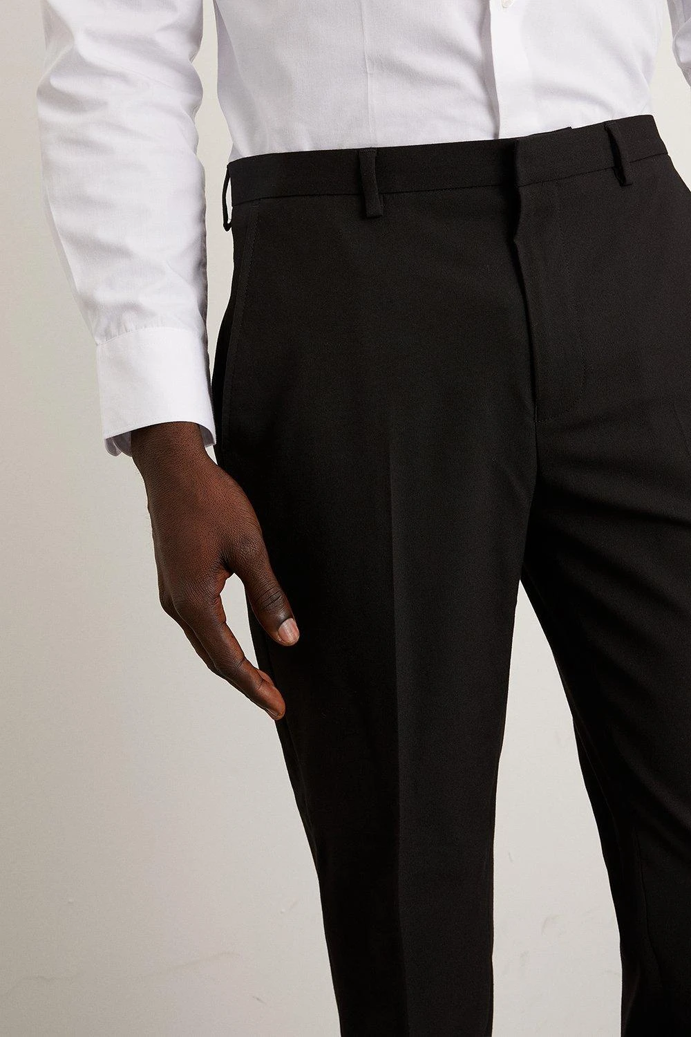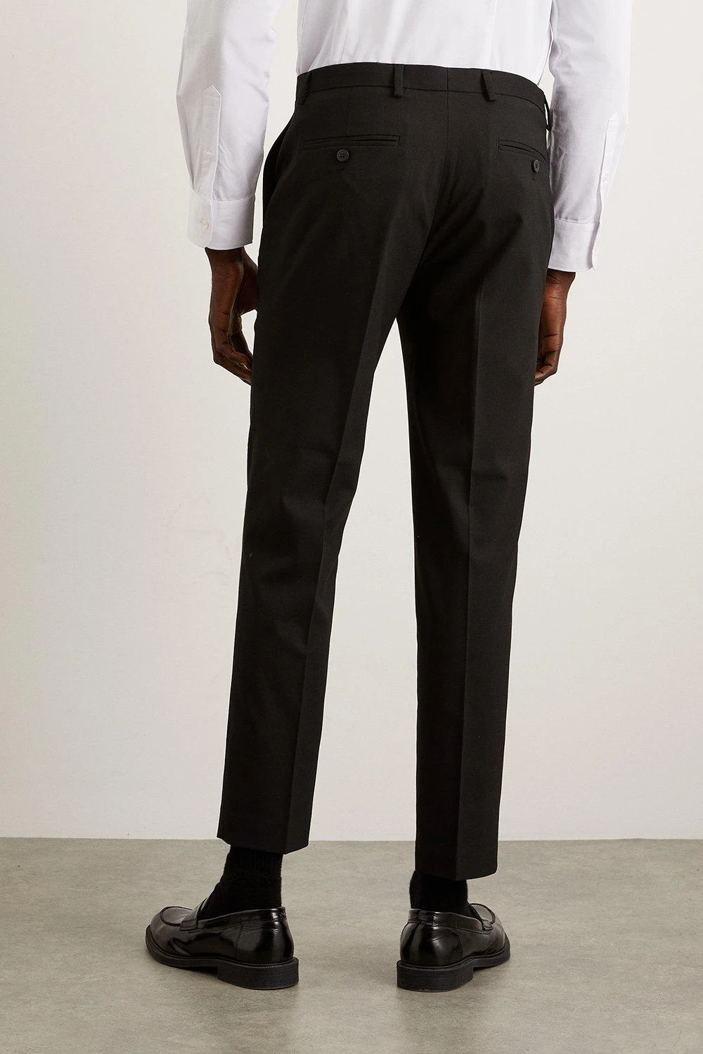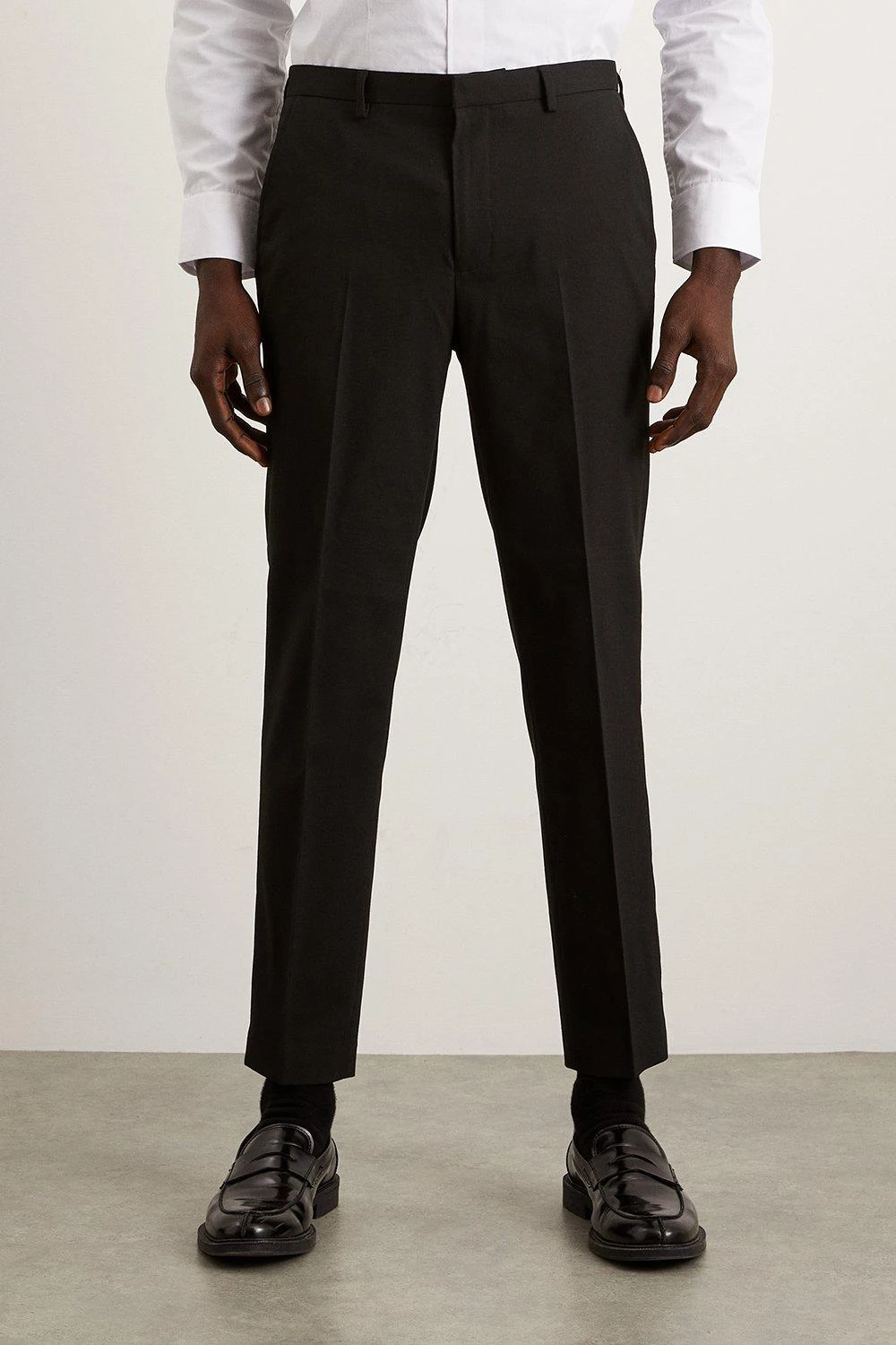 Established back in 1904, we’ve been providing you with great British style and timeless tailoring ever since. Featuring single and double breasted styles as well as classic and modern fits and patterns, our collection of mens suits will keep you on-trend with sharp tailoring, from season to season.Whether you’re suiting up for important meetings or you’ve got a special occasion coming up, we’ve got you sorted.Style: Skinny Fit Black Essential TrouserFit: SkinnyLength: Approx. 77cmDesign: Belt Loops