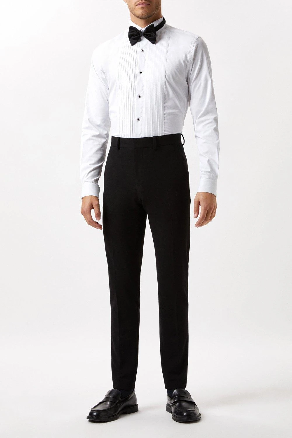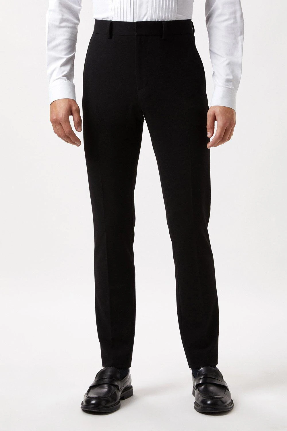 Established back in 1904, we’ve been providing you with great British style and timeless tailoring ever since. Featuring single and double breasted styles as well as classic and modern fits and patterns, our collection of mens suits will keep you on-trend with sharp tailoring, from season to season.Whether you’re suiting up for important meetings or you’ve got a special occasion coming up, we’ve got you sorted.Style: Skinny Fit Black Tuxedo Suit TrouserLength: Approx. 77cmFit: SkinnyIdeal for: SmartDesign: Belt Loops, Pockets, Hook Bar And Zip Fastening