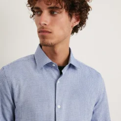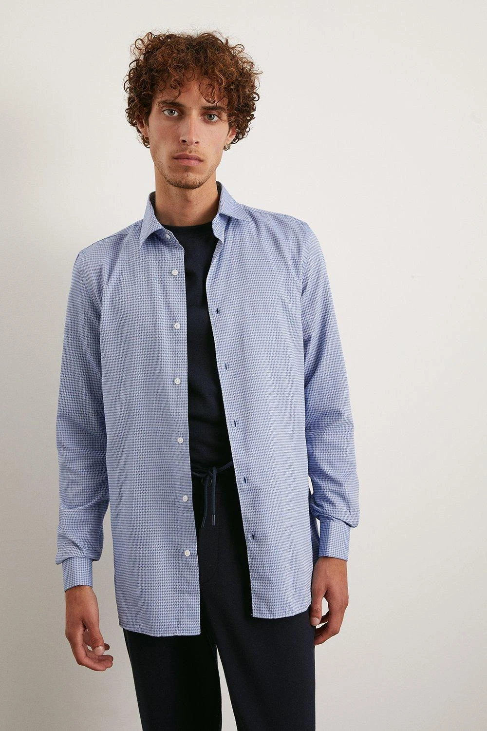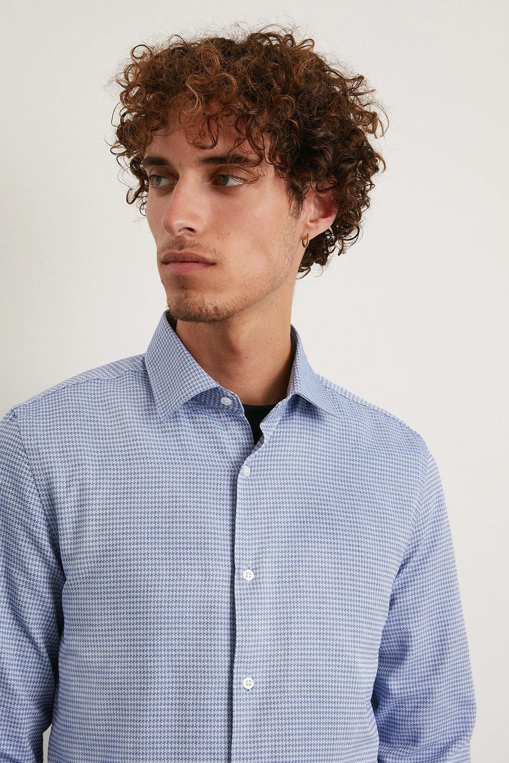 Burton Skinny Fit Blue Dogtooth Texture Shirt