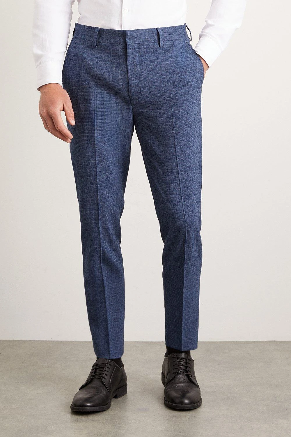 Burton Skinny Fit Blue Semi Plain Suit Trousers