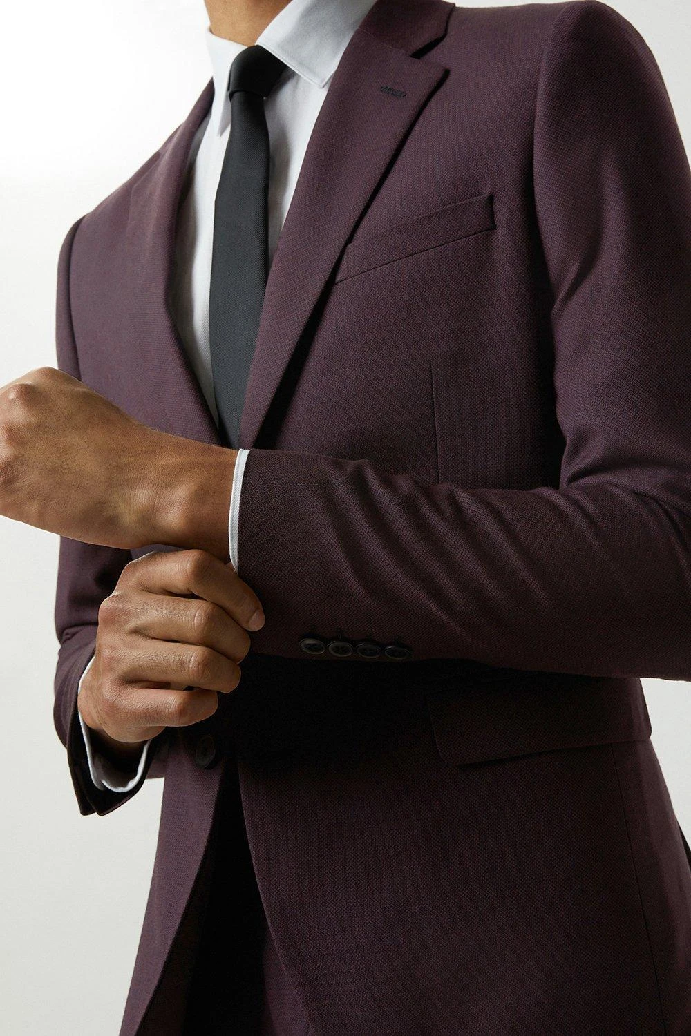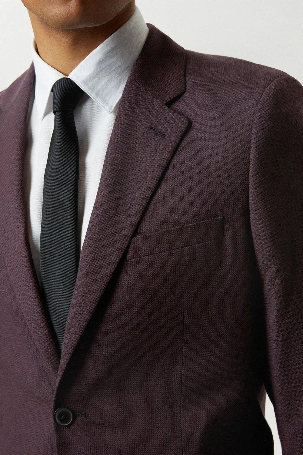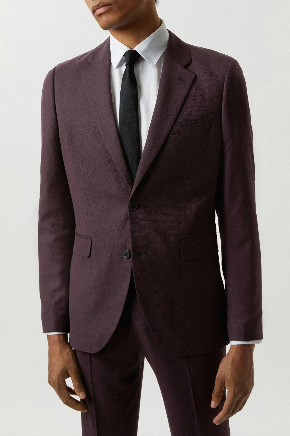 Established back in 1904, we’ve been providing you with great British style and timeless tailoring ever since. Featuring single and double breasted styles as well as classic and modern fits and patterns, our collection of mens suits will keep you on-trend with sharp tailoring, from season to season.Whether you’re suiting up for important meetings or you’ve got a special occasion coming up, we’ve got you sorted.Style: Skinny Fit Burgundy Micro Texture Suit JacketLength: Approx. 75cmFit: SkinnyIdeal for: Smart