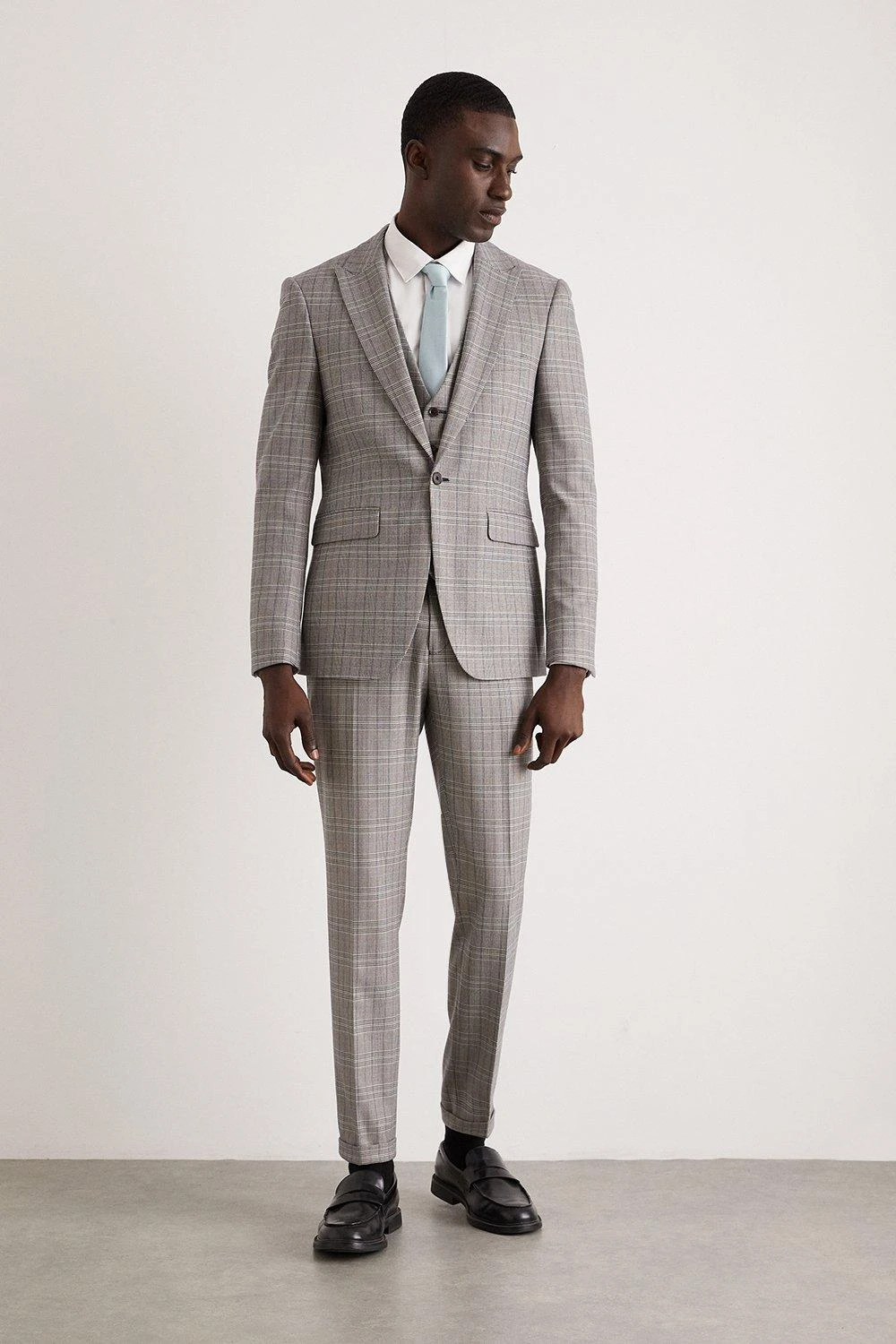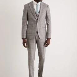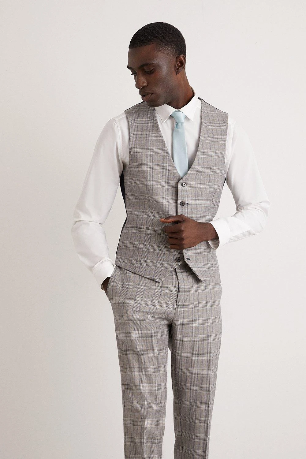 Established back in 1904, we’ve been providing you with great British style and timeless tailoring ever since. Featuring single and double breasted styles as well as classic and modern fits and patterns, our collection of mens suits will keep you on-trend with sharp tailoring, from season to season. Whether you’re suiting up for important meetings or you’ve got a special occasion coming up, we’ve got you sorted. Style: Skinny Fit Grey Blue Pow Check Waistcoat. Ideal for: Smart. Fit: Skinny. Design: Single Button. Model wears size UK 10 and is 5′ 9″ tall.