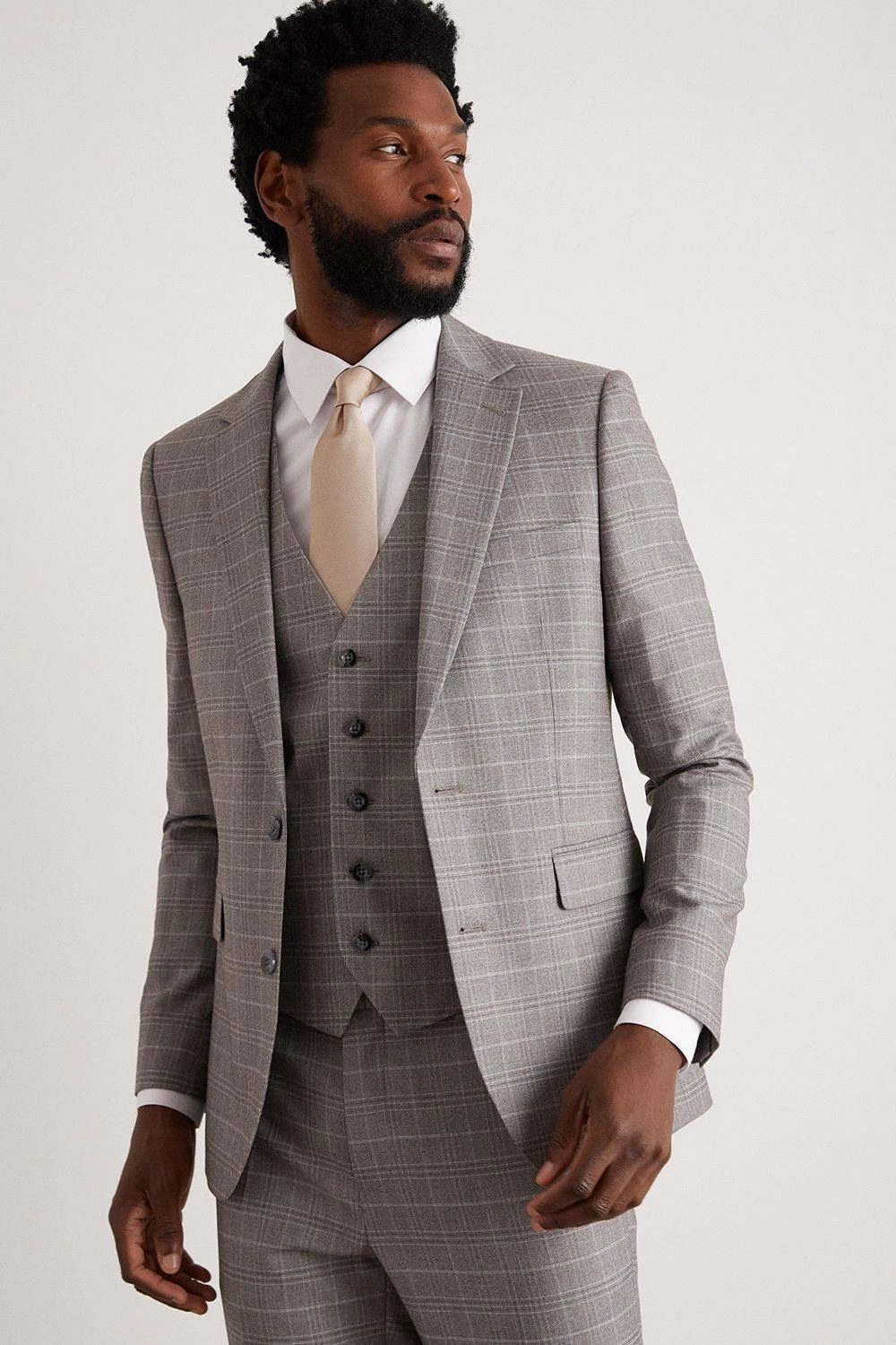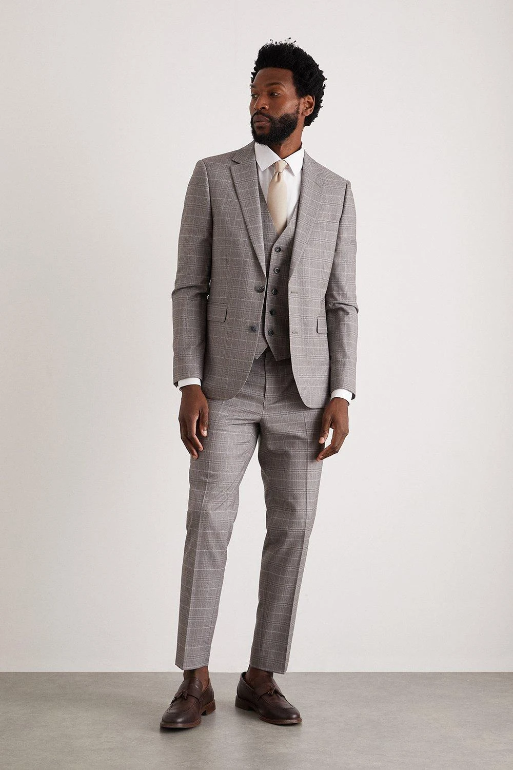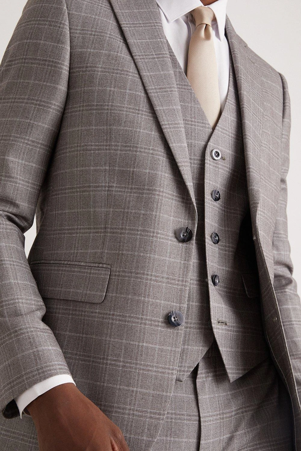 Established back in 1904, we’ve been providing you with great British style and timeless tailoring ever since. Featuring single and double breasted styles as well as classic and modern fits and patterns, our collection of mens suits will keep you on-trend with sharp tailoring, from season to season. Whether you’re suiting up for important meetings or you’ve got a special occasion coming up, we’ve got you sorted. Style: Skinny Fit Grey Fine Check Suit Jacket. Ideal for: Smart. Fit: Skinny. Design: Single Button. Model wears size UK 10 and is 5′ 9″ tall.