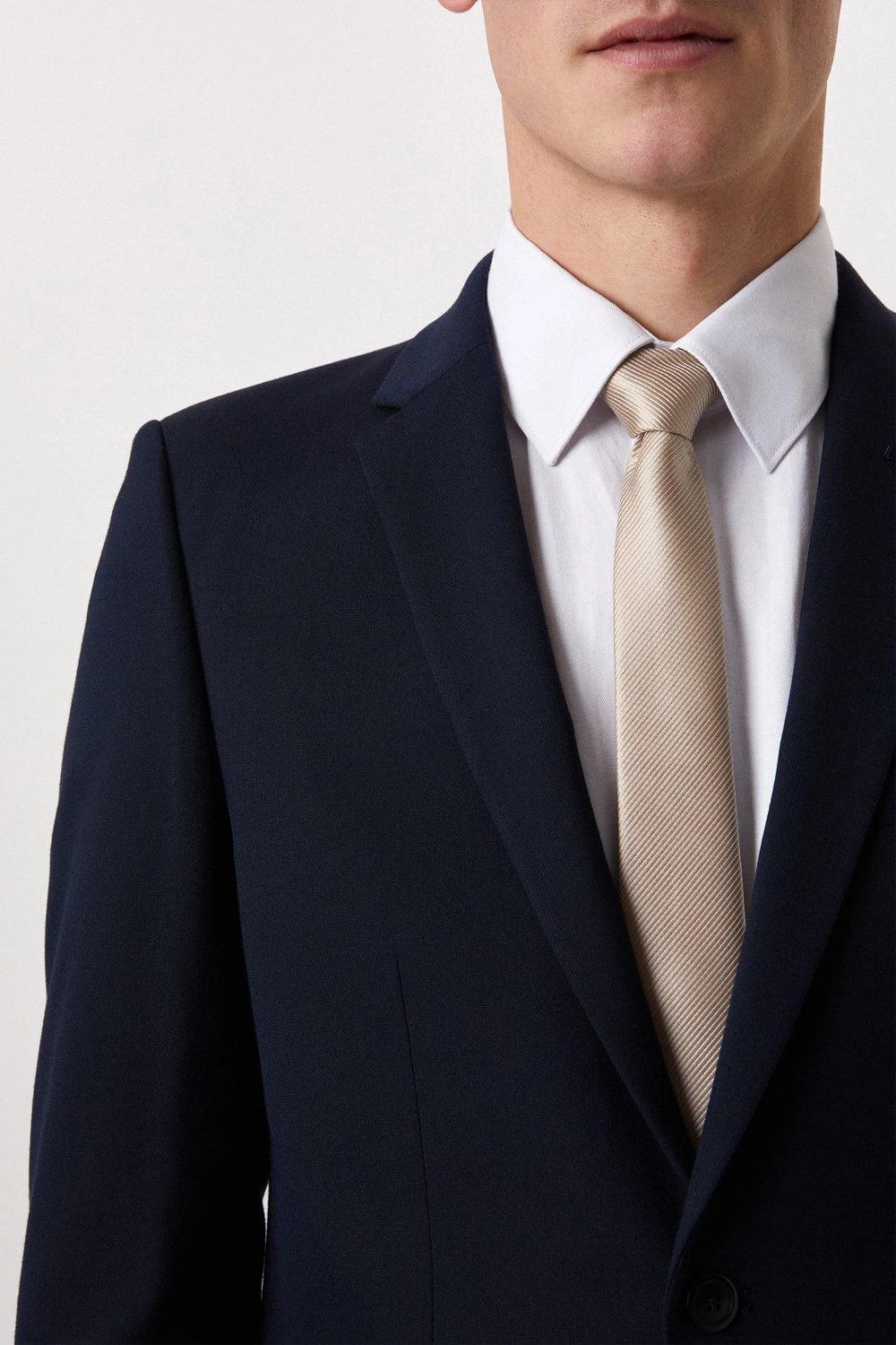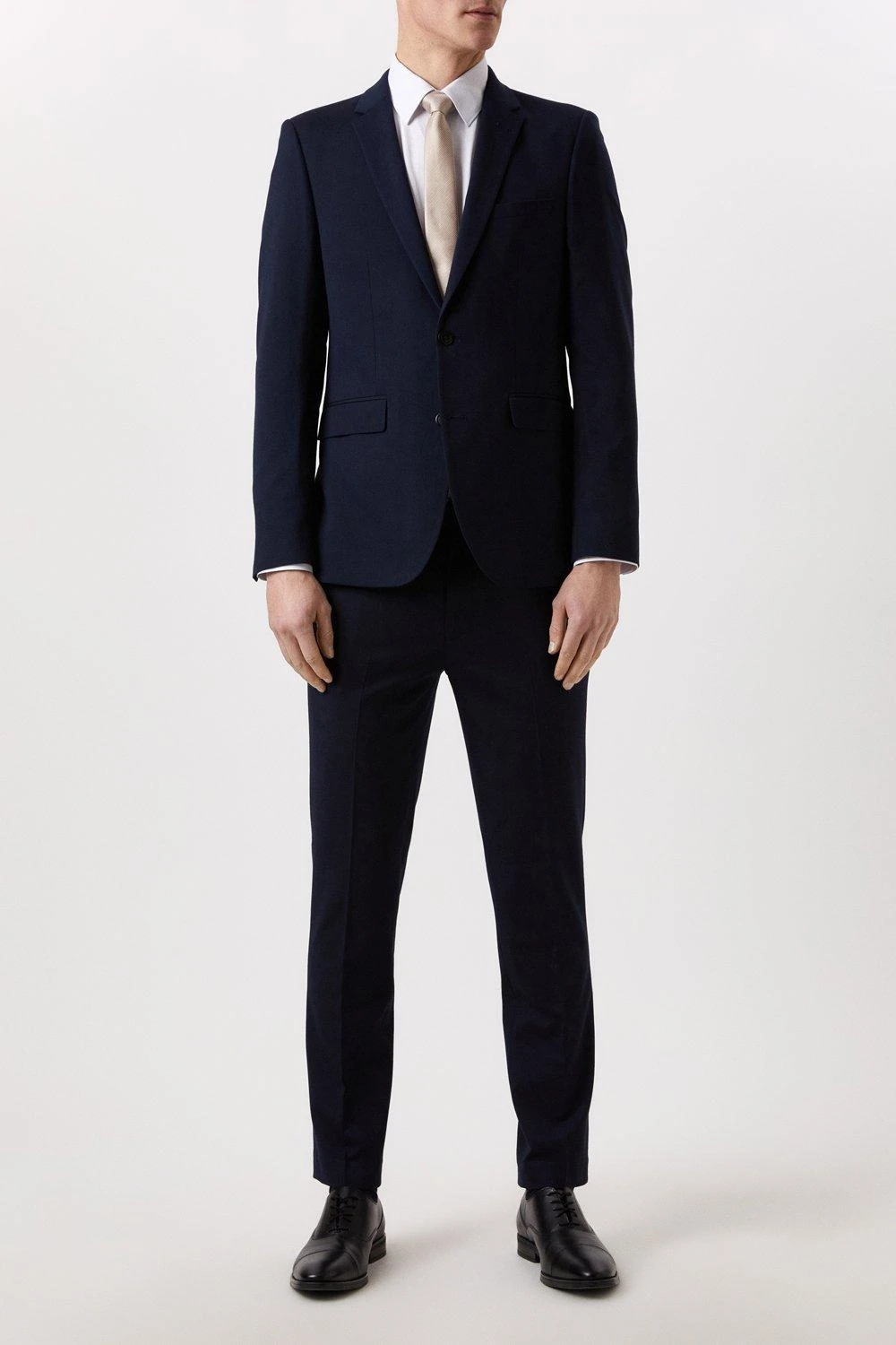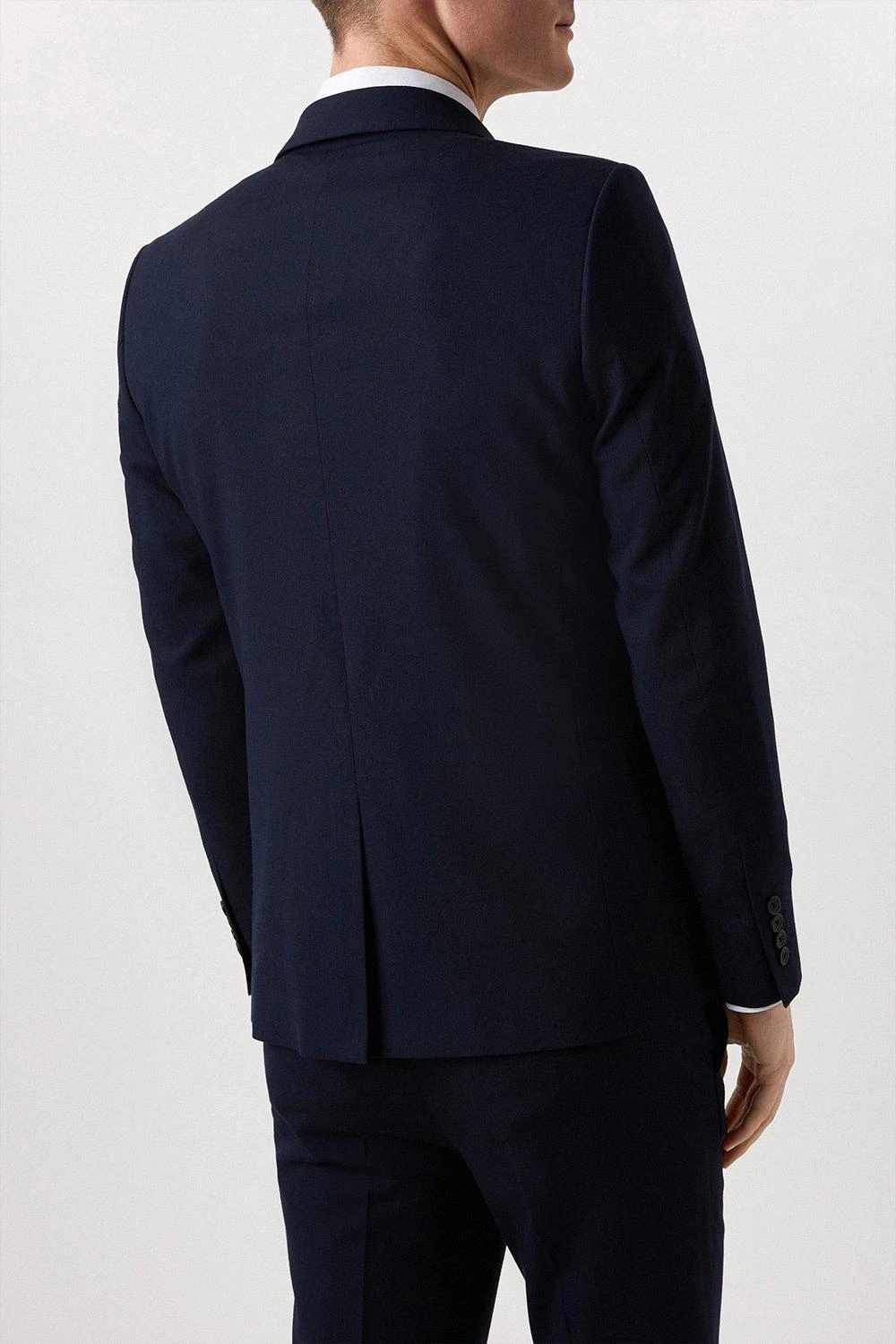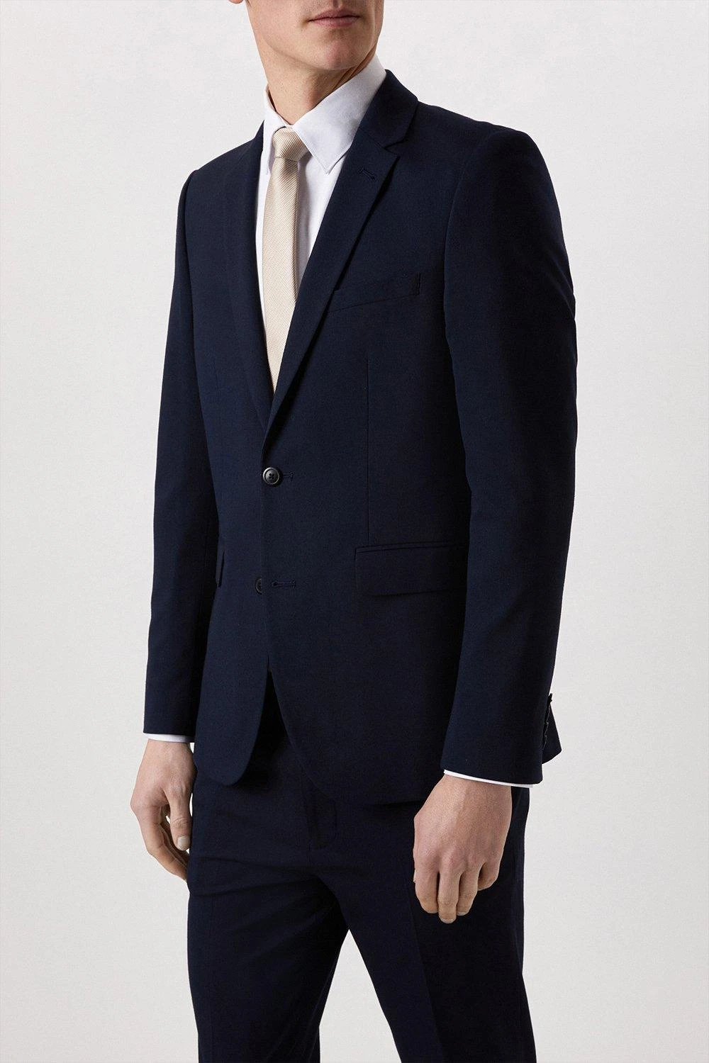 Part of our main range of suits, this 2 piece suit sits under our Essentials collection. This suit jacket comes in a comfortable fabric in navy and a perfect skinny fit. Featuring notch lapels, single breasted front fastening, front flap pockets and back vents. Main fabric: 66% Polyester 32% Viscose 2% Elastane
