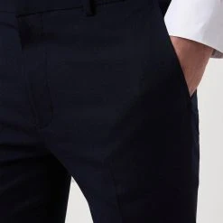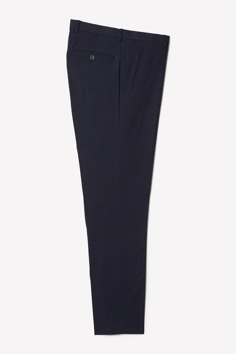 Part of our main range of suits, this 3 piece suit sits under our Essentials collection. This suit trouser comes in a comfortable fabric in navy and a perfect skinny fit. Featuring belt loops around the waist and functional side pockets. Main fabric: 66% Polyester 32% Viscose 2% Elastane