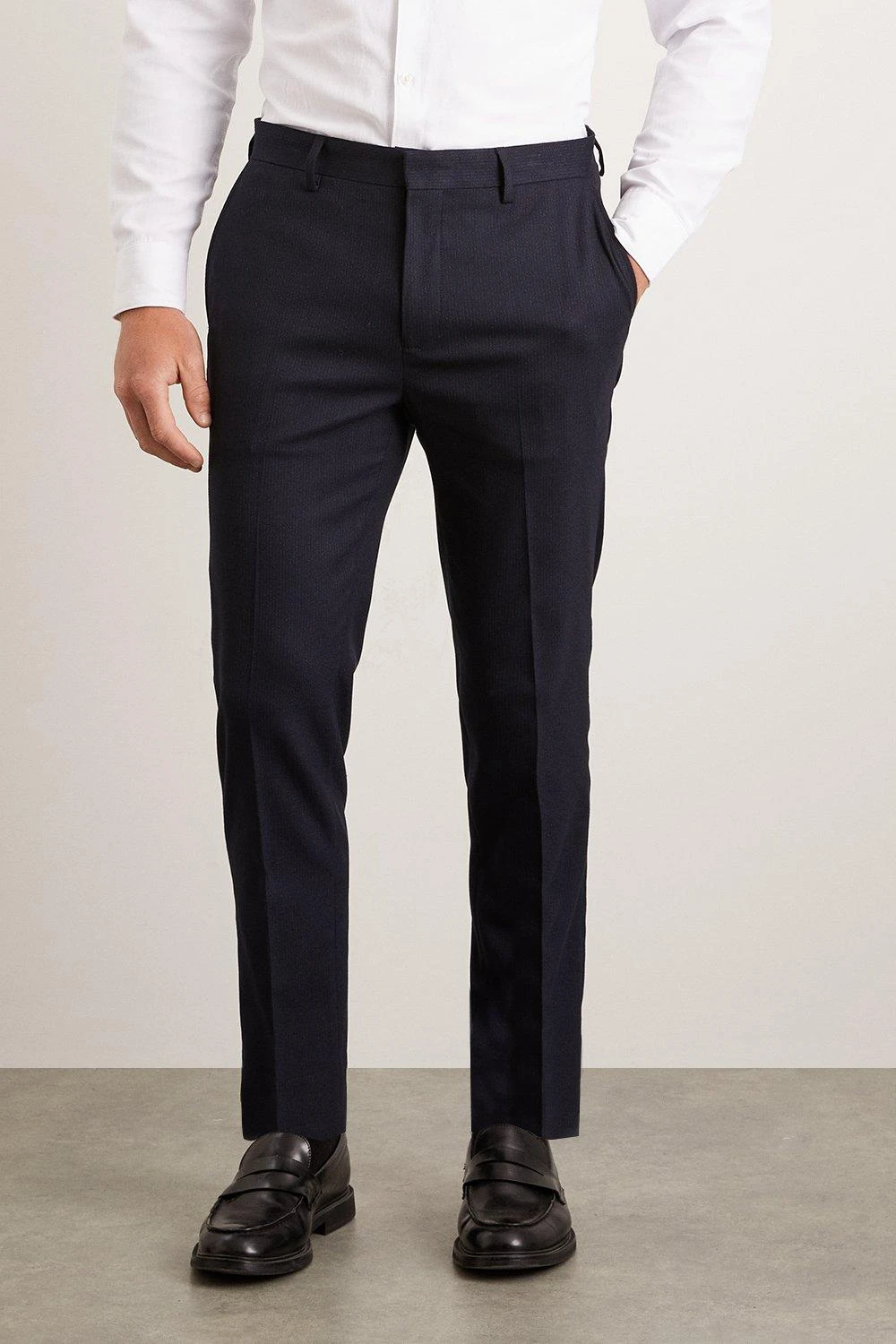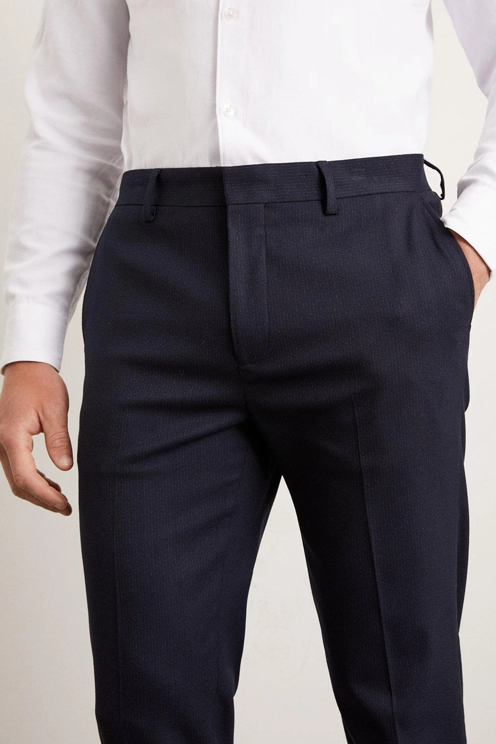 Established back in 1904, we’ve been providing you with great British style and timeless tailoring ever since. Featuring single and double breasted styles as well as classic and modern fits and patterns, our collection of mens suits will keep you on-trend with sharp tailoring, from season to season. Whether you’re suiting up for important meetings or you’ve got a special occasion coming up, we’ve got you sorted.Style: Skinny Fit Navy Fine Stripe Suit TrousersLength: Approx. 77CMFit: SkinnyIdeal for: Smart