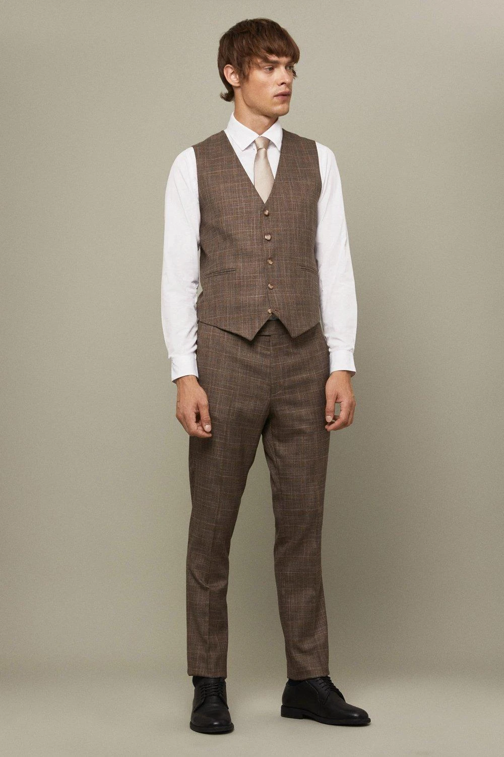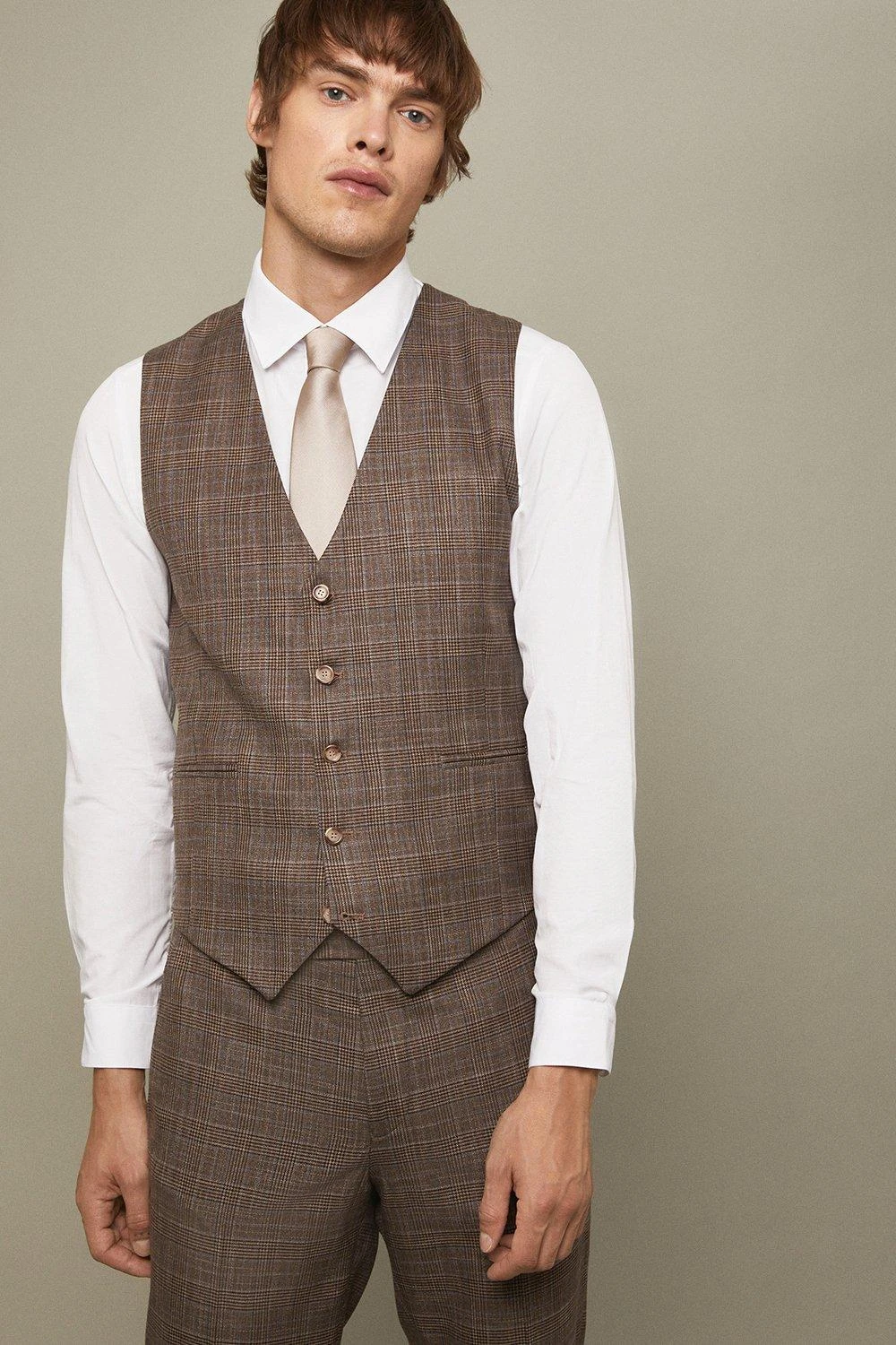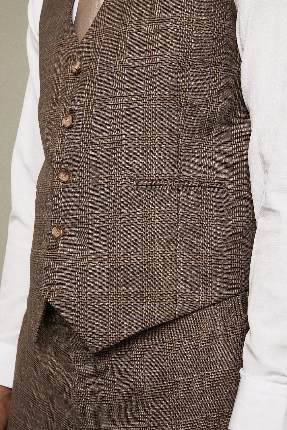 Established back in 1904, we’ve been providing you with great British style and timeless tailoring ever since. Featuring single and double breasted styles as well as classic and modern fits and patterns, our collection of mens suits will keep you on-trend with sharp tailoring, from season to season.Whether you’re suiting up for important meetings or you’ve got a special occasion coming up, we’ve got you sorted.Style: Skinny Fit Neutral Blue Check WaistcoatFit: SkinnyLength: Approx. 59cmDesign: Vee Neck, 5 Button Fastening, Adjustable Back Strap, Check Fabric