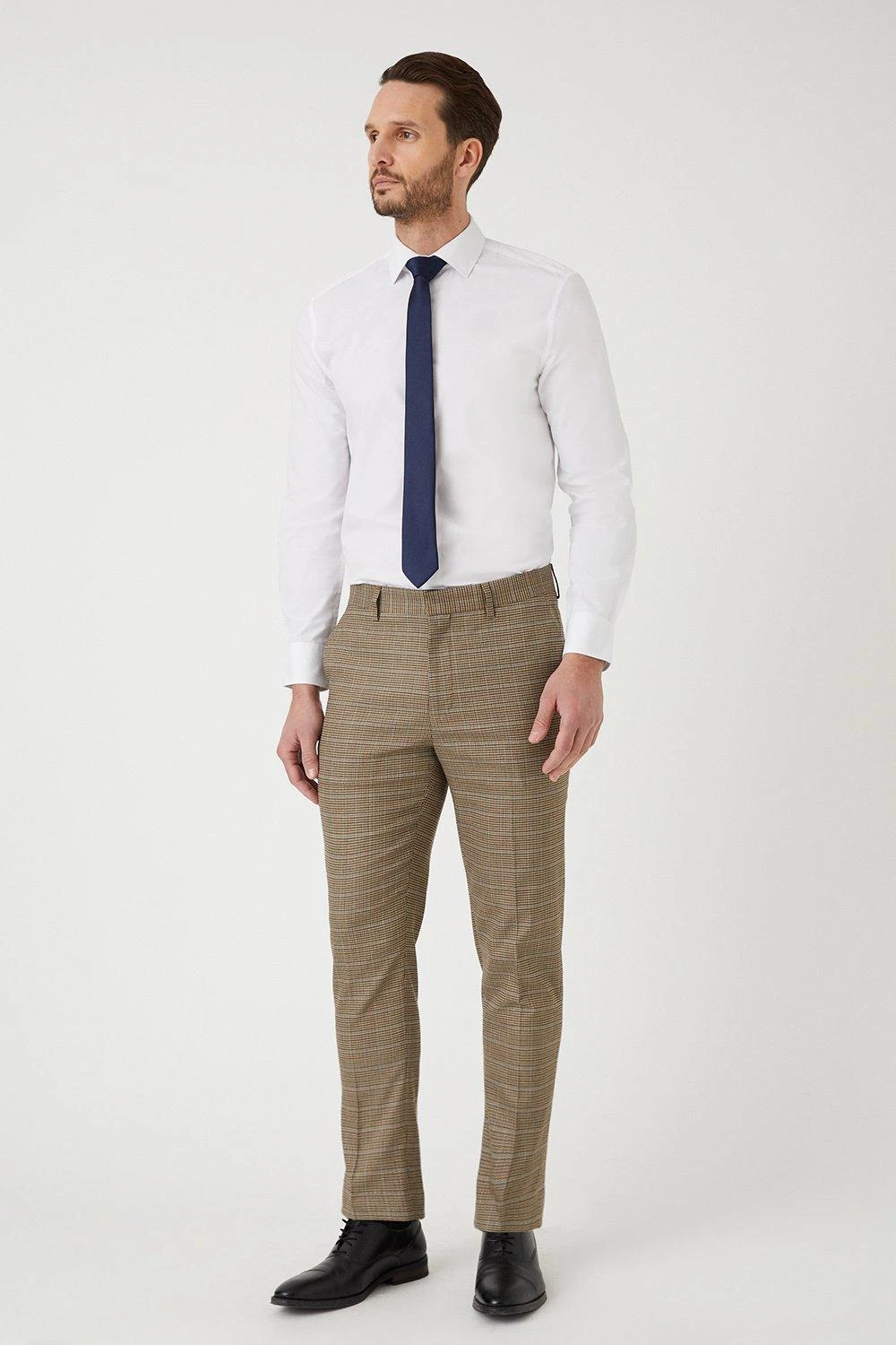 Established back in 1904, we’ve been providing you with great British style and timeless tailoring ever since. Featuring single and double breasted styles as well as classic and modern fits and patterns, our collection of mens suits will keep you on-trend with sharp tailoring, from season to season. Whether you’re suiting up for important meetings or you’ve got a special occasion coming up, we’ve got you sorted. Style: Skinny Fit Neutral Puppy Tooth Suit Trousers. Ideal for: Smart. Fit: Skinny. Design: Single Button. Model wears size UK 10 and is 5′ 9″ tall.