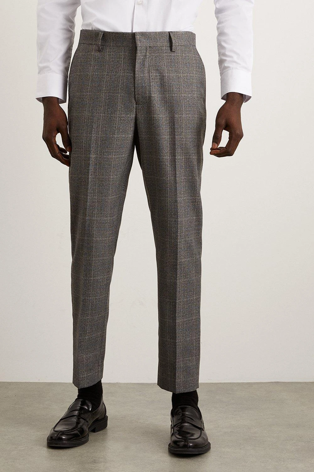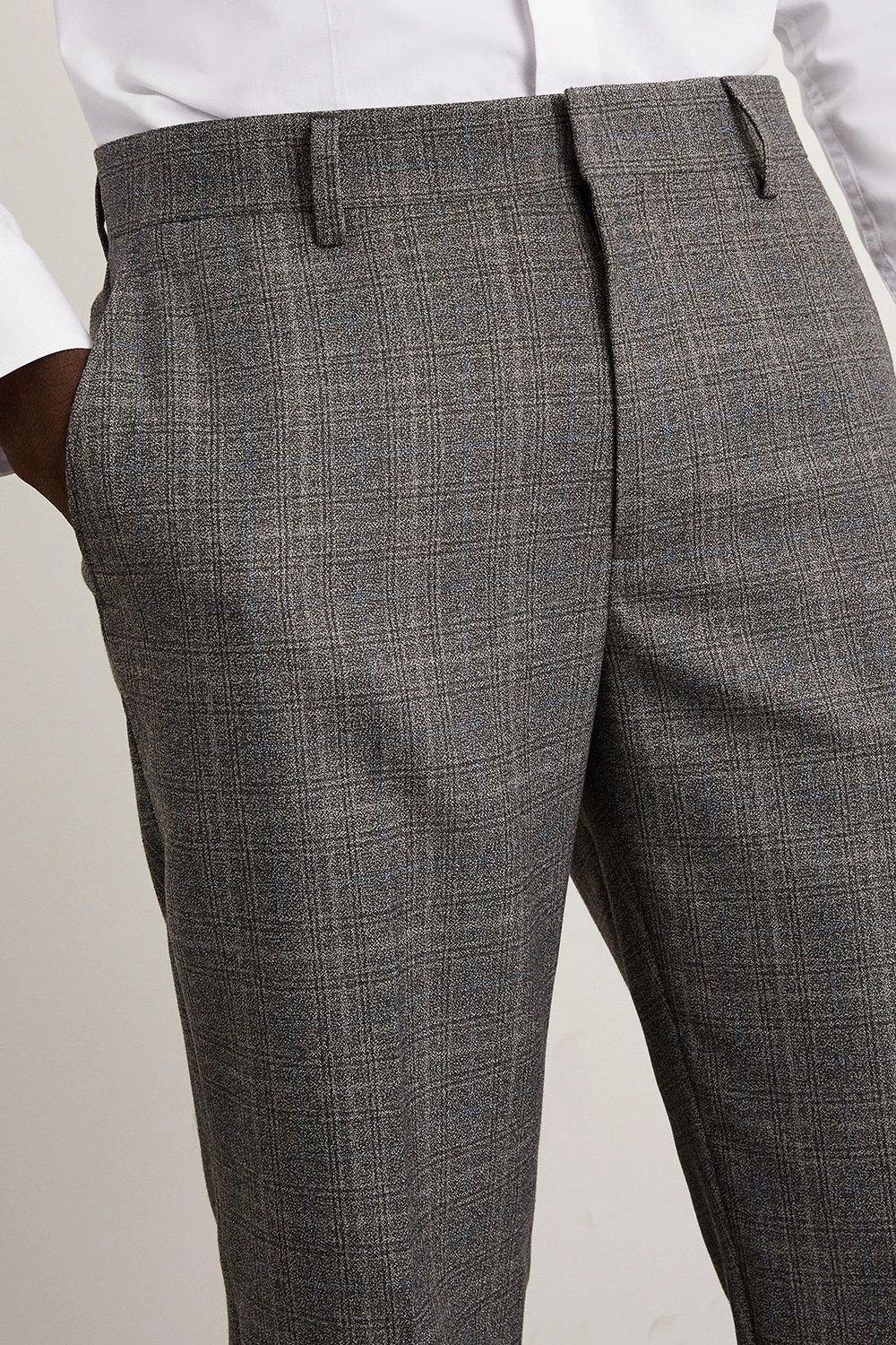 Established back in 1904, we’ve been providing you with great British style and timeless tailoring ever since. Featuring single and double breasted styles as well as classic and modern fits and patterns, our collection of mens suits will keep you on-trend with sharp tailoring, from season to season. Whether you’re suiting up for important meetings or you’ve got a special occasion coming up, we’ve got you sorted.Style: Skinny Grey Blue Highlight Check Suit TrouserLength: Approx. 77cmFit: SkinnyIdeal for: Smart