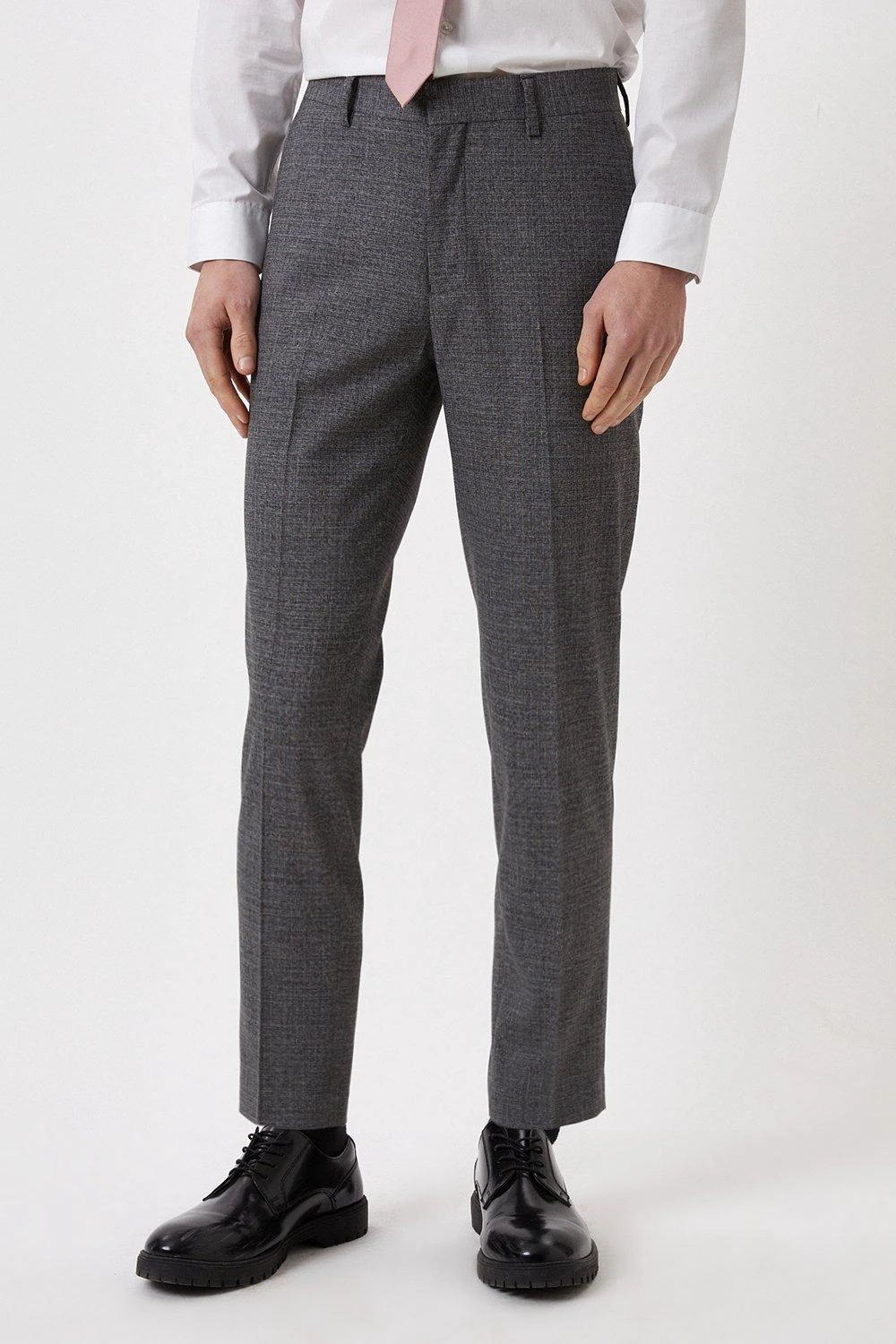 Burton Skinny Grey Texture Grid Check Suit Trousers