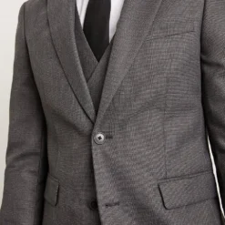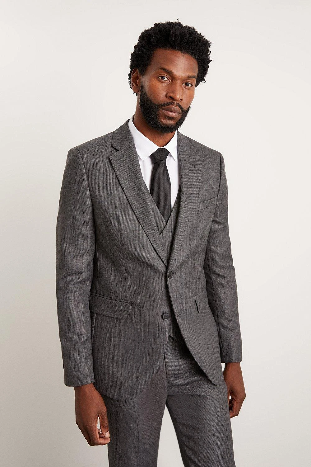 Burton Slim Charcoal Wide Self Stripe Suit Jacket