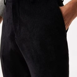 Part of our main range of tailoring, this suit trouser comes in a black corduroy design and a perfect slim fit. Featuring belt loops and functional side pockets. Model is 6 foot 1 and is wearing size 34R.