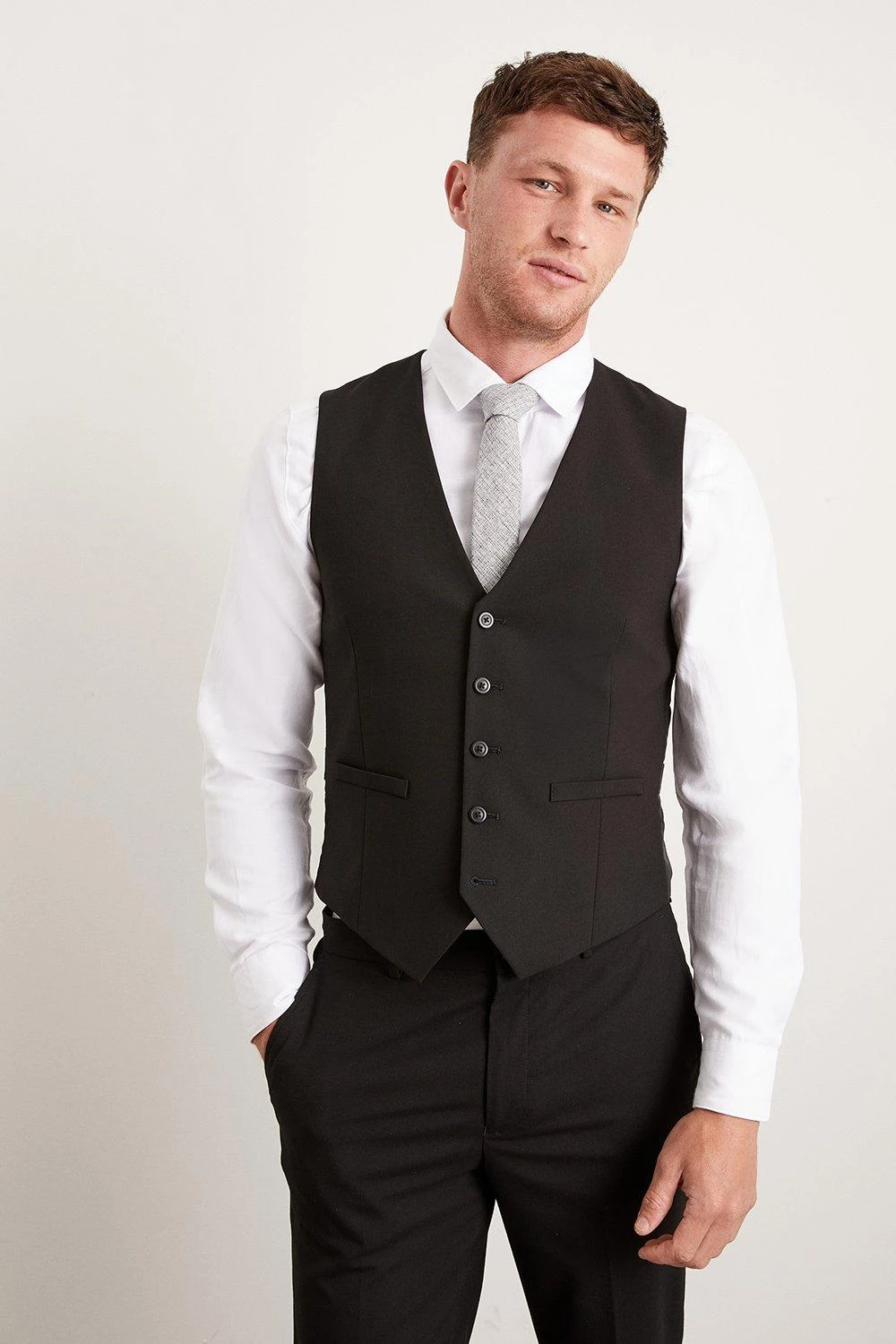 Part of Burton’s classic tailoring range bringing you timeless style at affordable prices in a range of colours all available as a 2 or 3 piece suit in a range of fits.Style: Slim Fit Black Essential WaistcoatLength: Approx. 59cmFit: Slim FitIdeal for: Smart