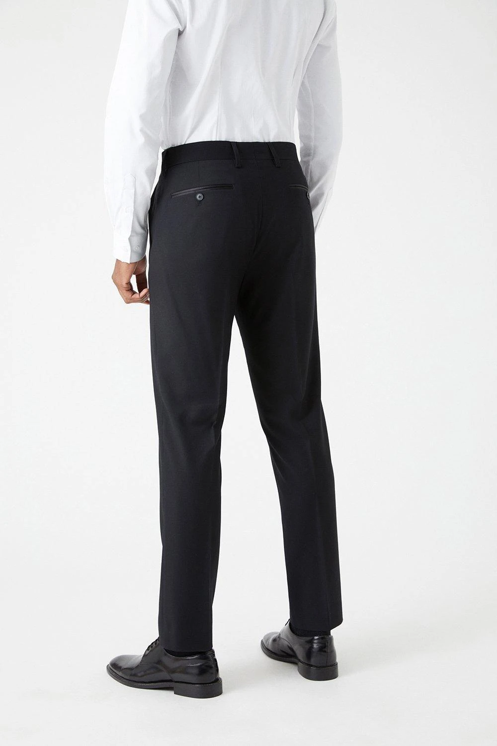 Established back in 1904, we’ve been providing you with great British style and timeless tailoring ever since. Featuring single and double breasted styles as well as classic and modern fits and patterns, our collection of mens suits will keep you on-trend with sharp tailoring, from season to season. Whether you’re suiting up for important meetings or you’ve got a special occasion coming up, we’ve got you sorted. Style: Slim Fit Black Tuxedo Suit Trousers. Ideal for: Smart. Fit: Slim. Design: Plain. Model wears size UK 10 and is 5′ 9″ tall.