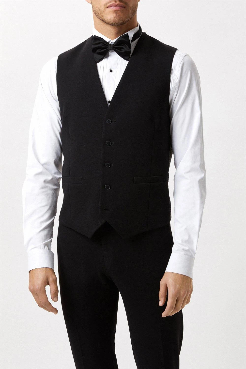 Established back in 1904, we’ve been providing you with great British style and timeless tailoring ever since. Featuring single and double breasted styles as well as classic and modern fits and patterns, our collection of mens suits will keep you on-trend with sharp tailoring, from season to season.Whether you’re suiting up for important meetings or you’ve got a special occasion coming up, we’ve got you sorted.Style: Slim Fit Black Tuxedo WaistcoatLength: Approx. 59cmFit: SlimIdeal for: SmartDesign: Adjustable Back Strap
