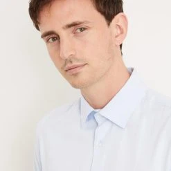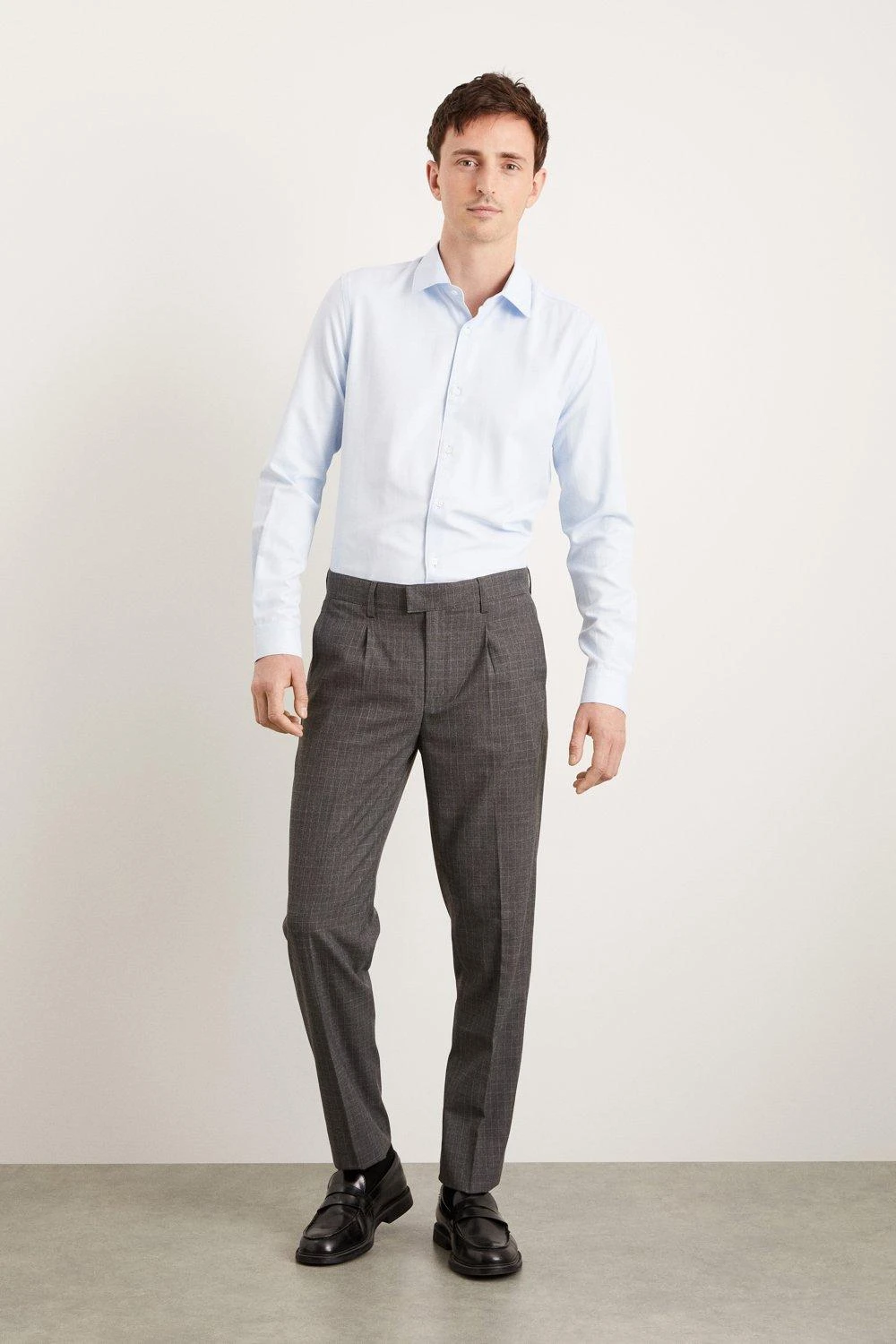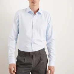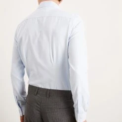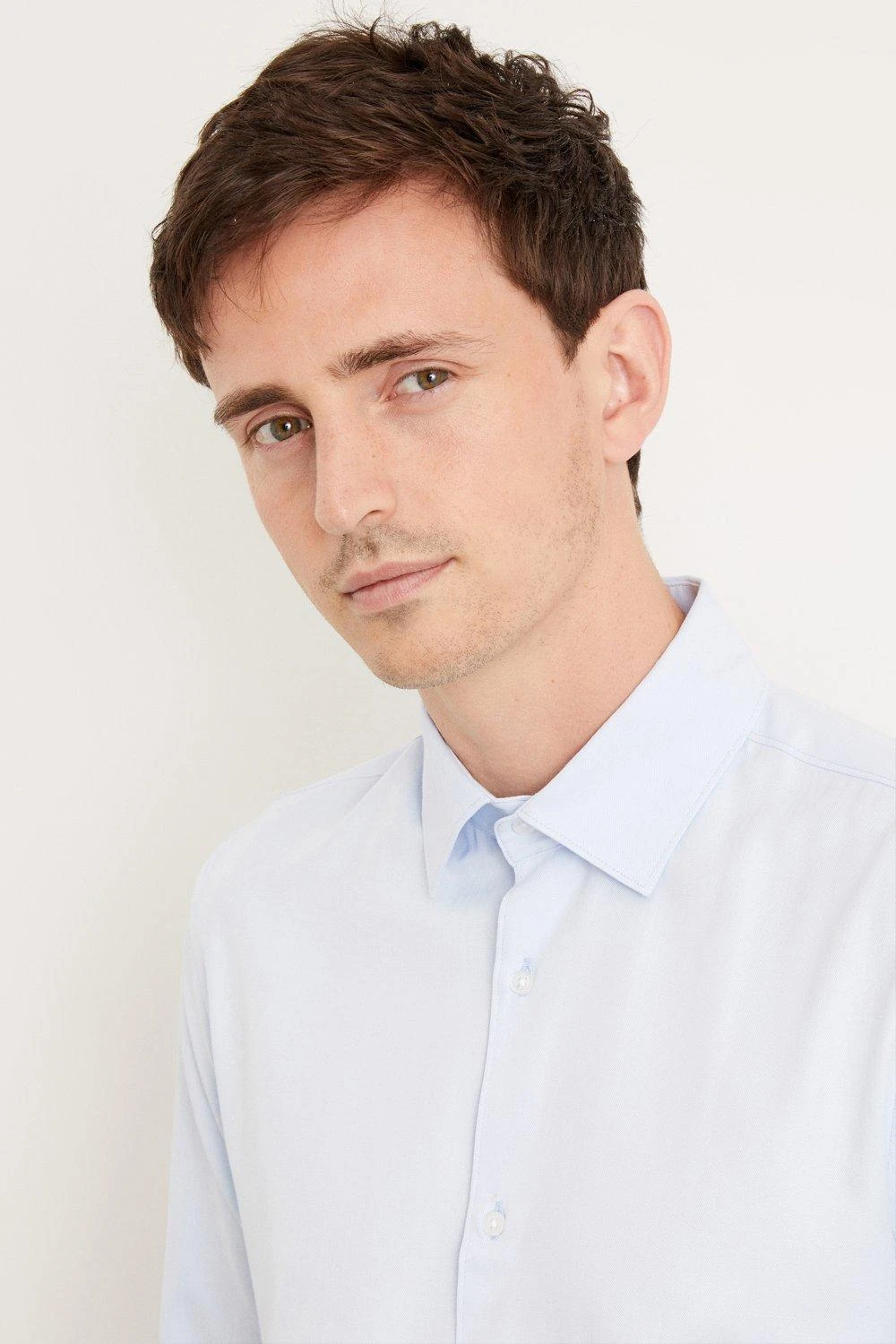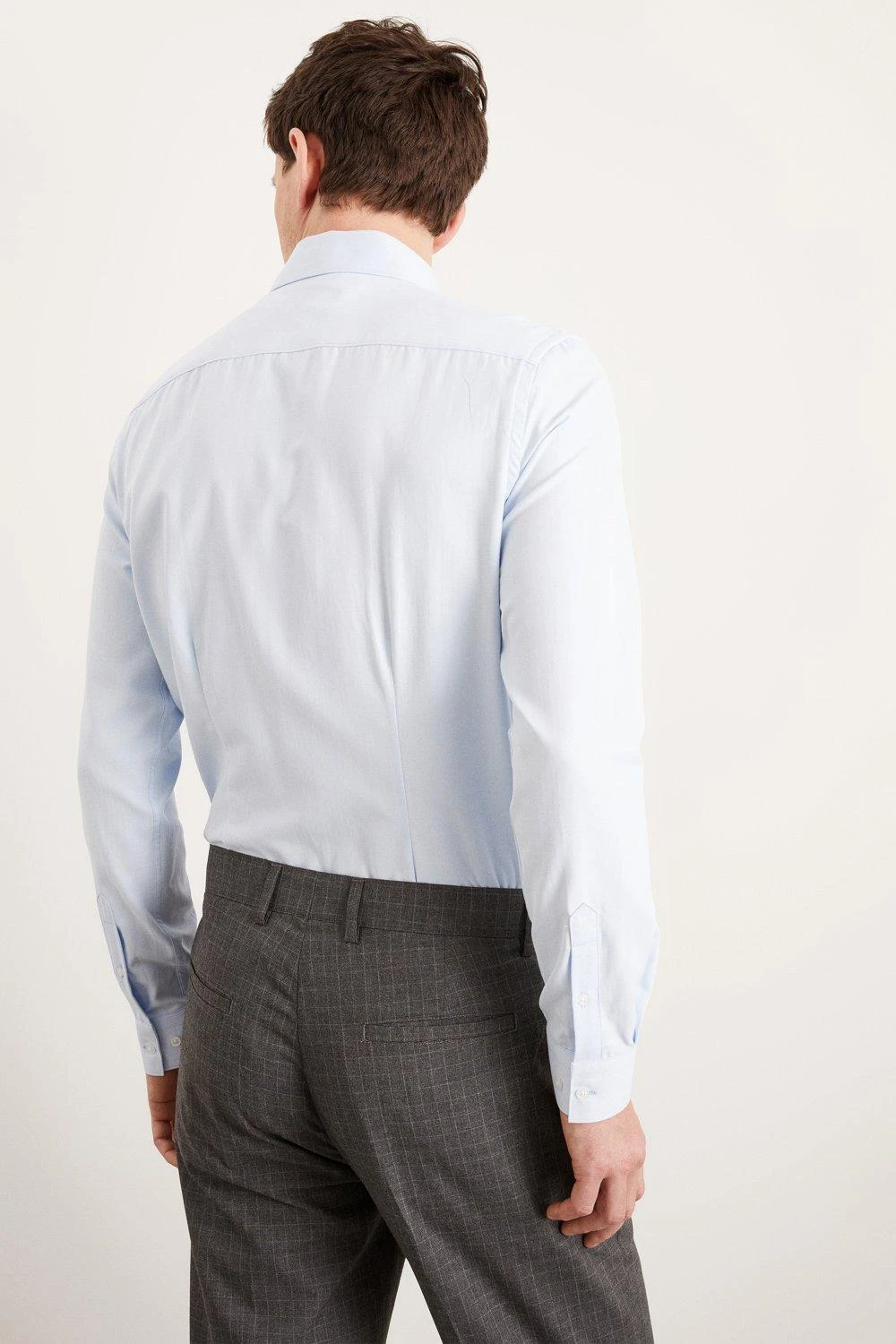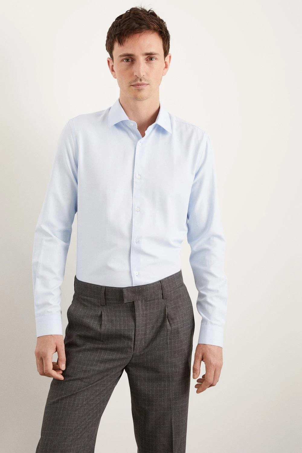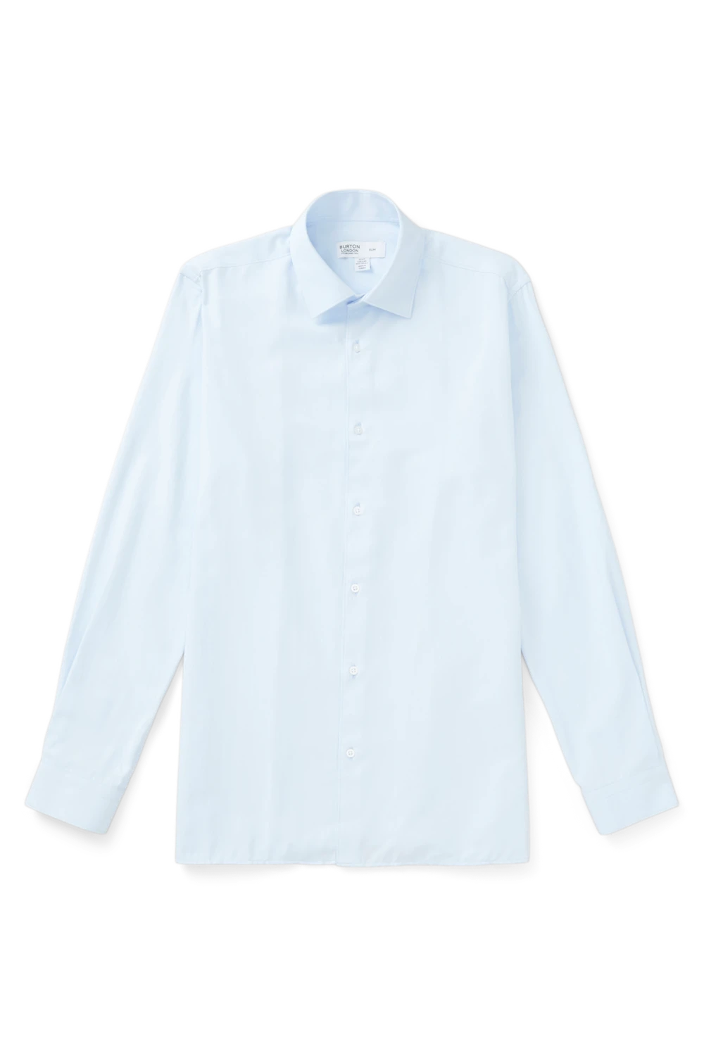 Burton Slim Fit Blue Herringbone Texture Smart Shirt