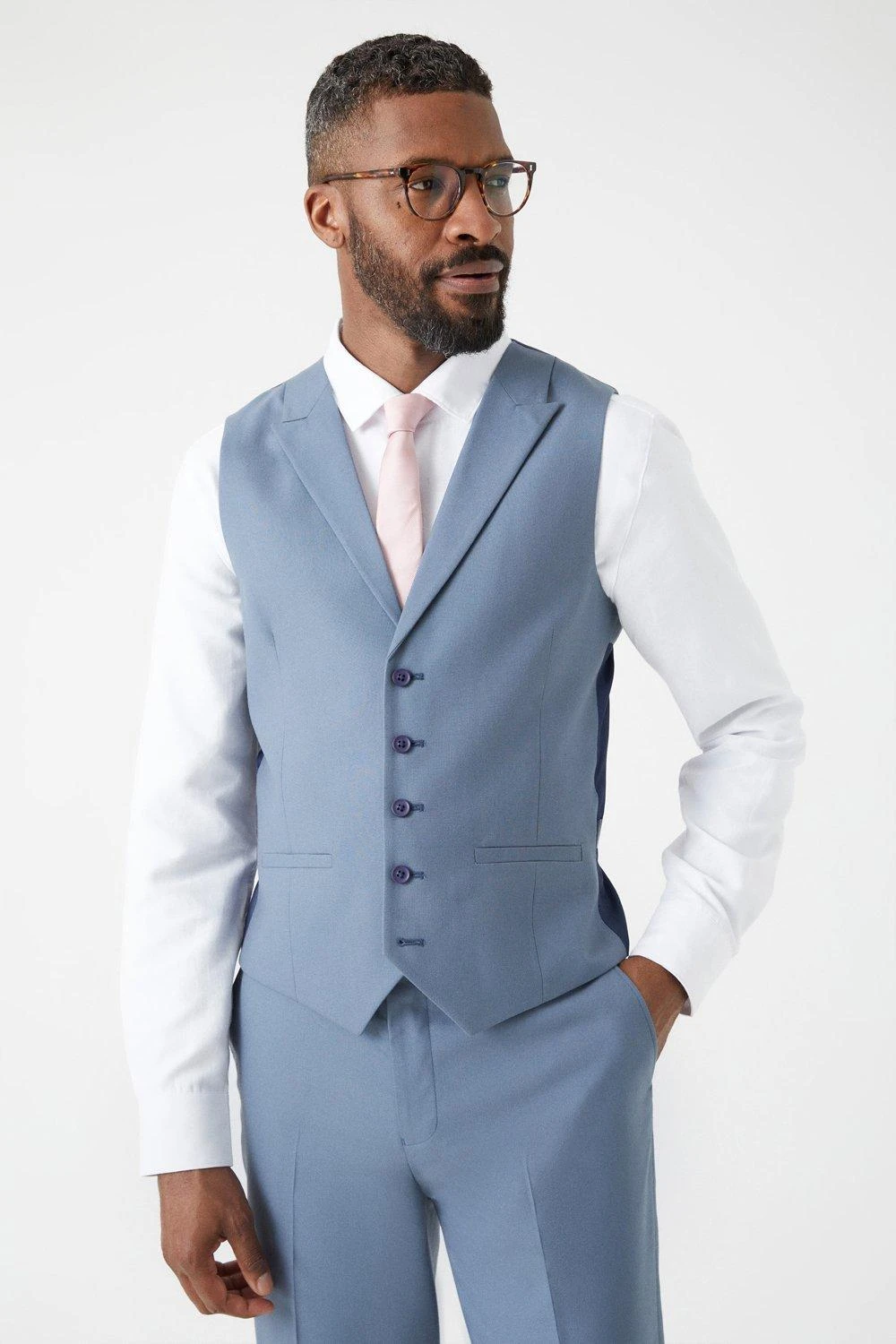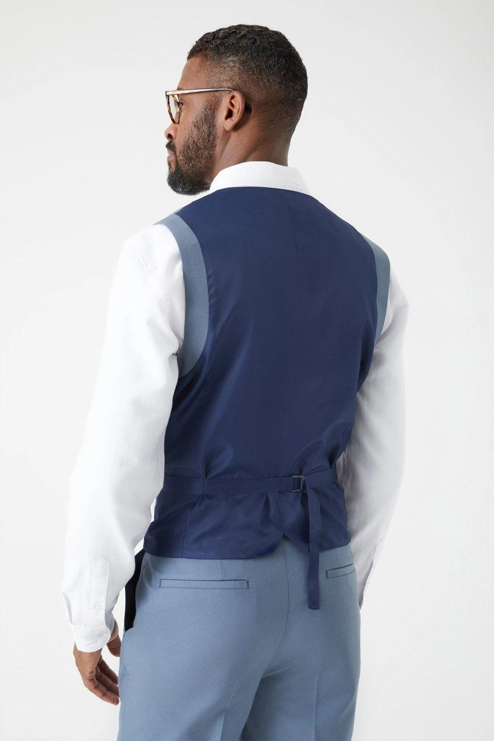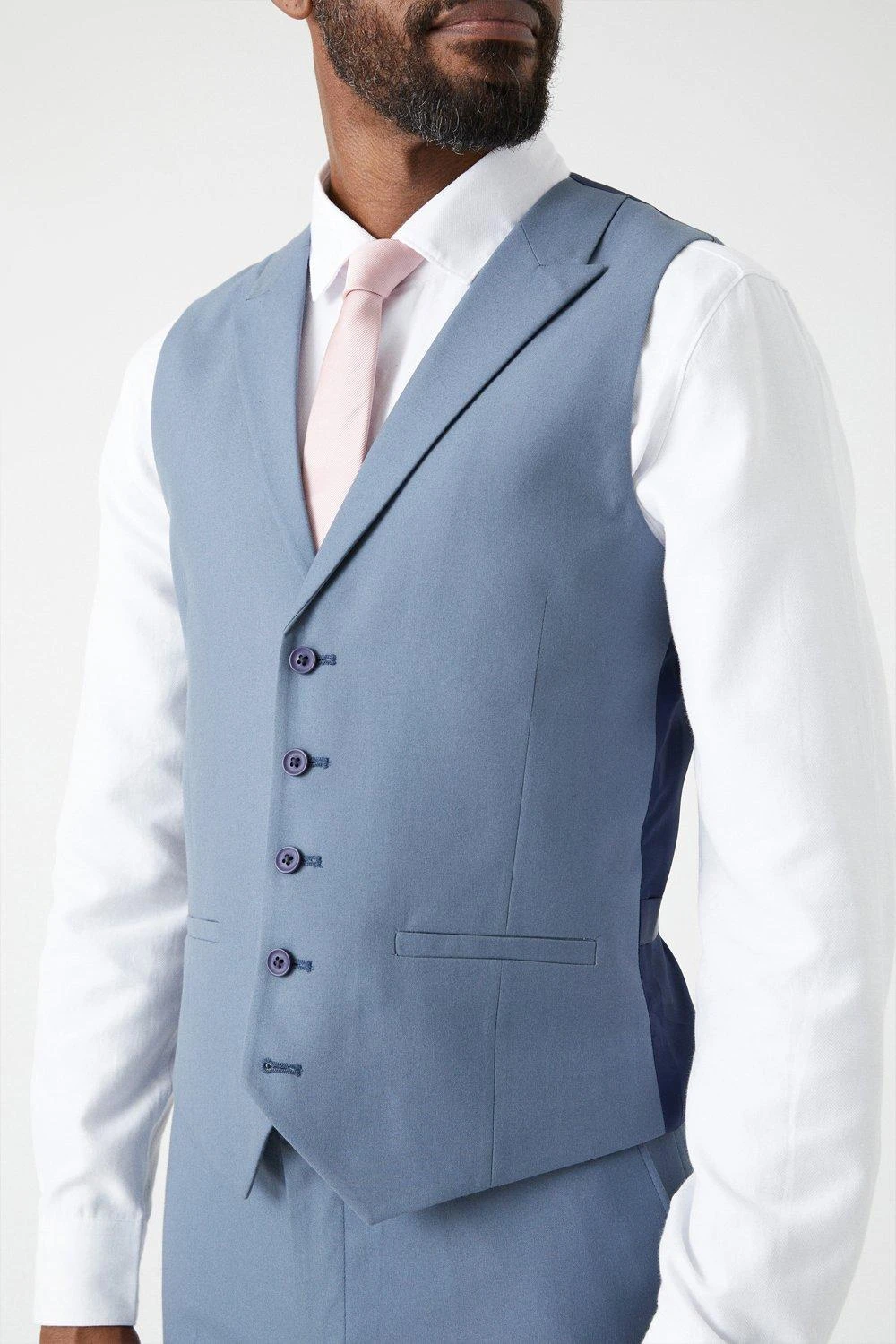 Established back in 1904, we’ve been providing you with great British style and timeless tailoring ever since. Featuring single and double breasted styles as well as classic and modern fits and patterns, our collection of mens suits will keep you on-trend with sharp tailoring, from season to season. Whether you’re suiting up for important meetings or you’ve got a special occasion coming up, we’ve got you sorted. Style: Slim Fit Blue Waistcoat. Ideal for: Smart. Fit: Slim. Design: Single Button. Model wears size UK 10 and is 5′ 9″ tall.