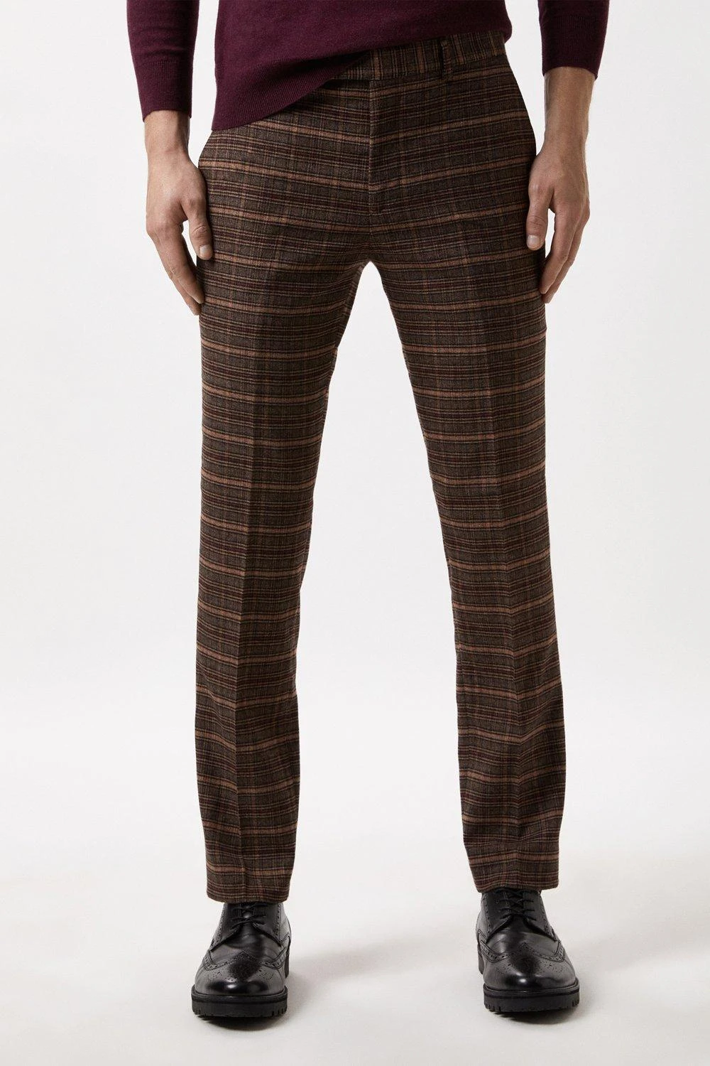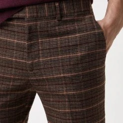 Burton Slim Fit Brown Check Suit Trousers