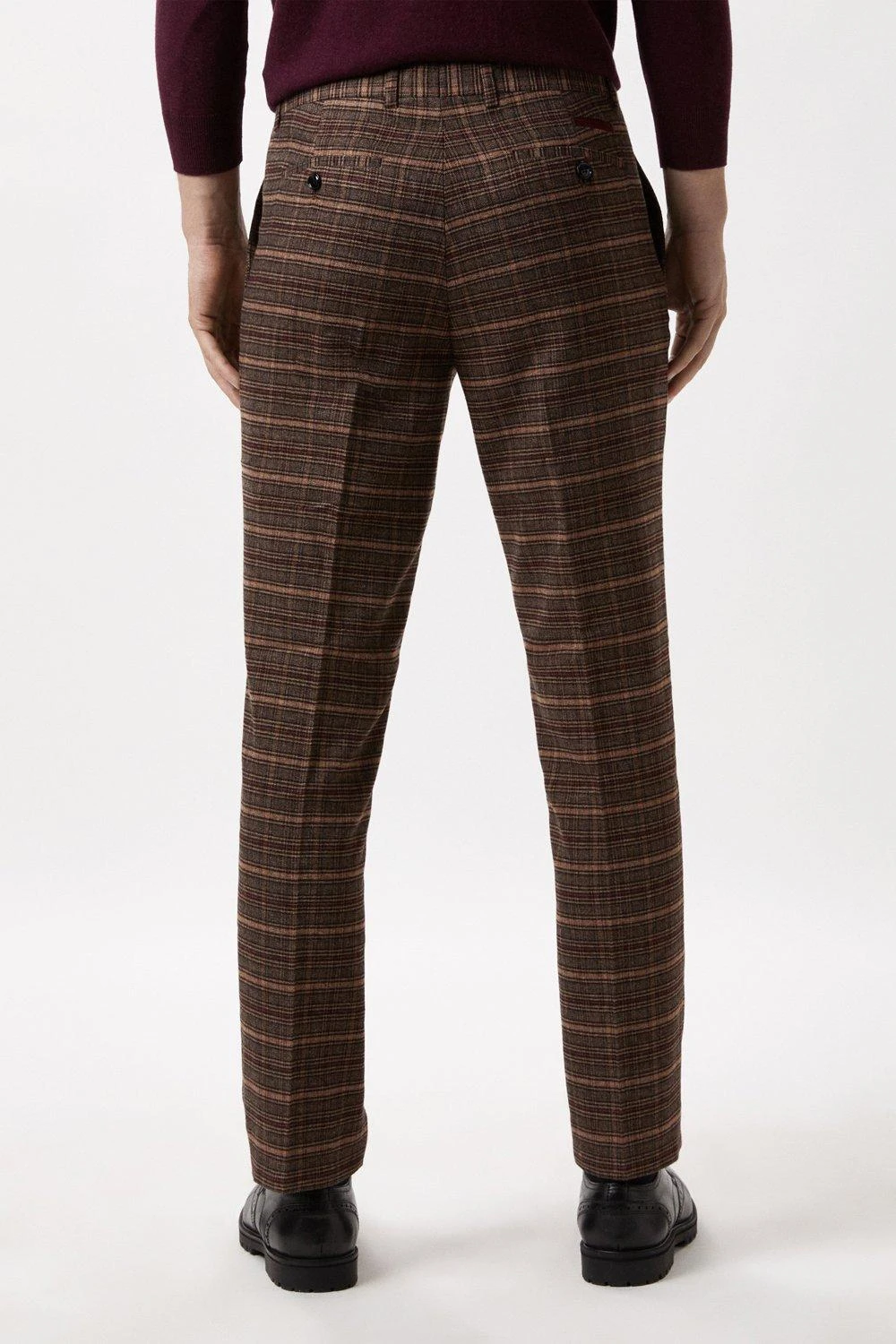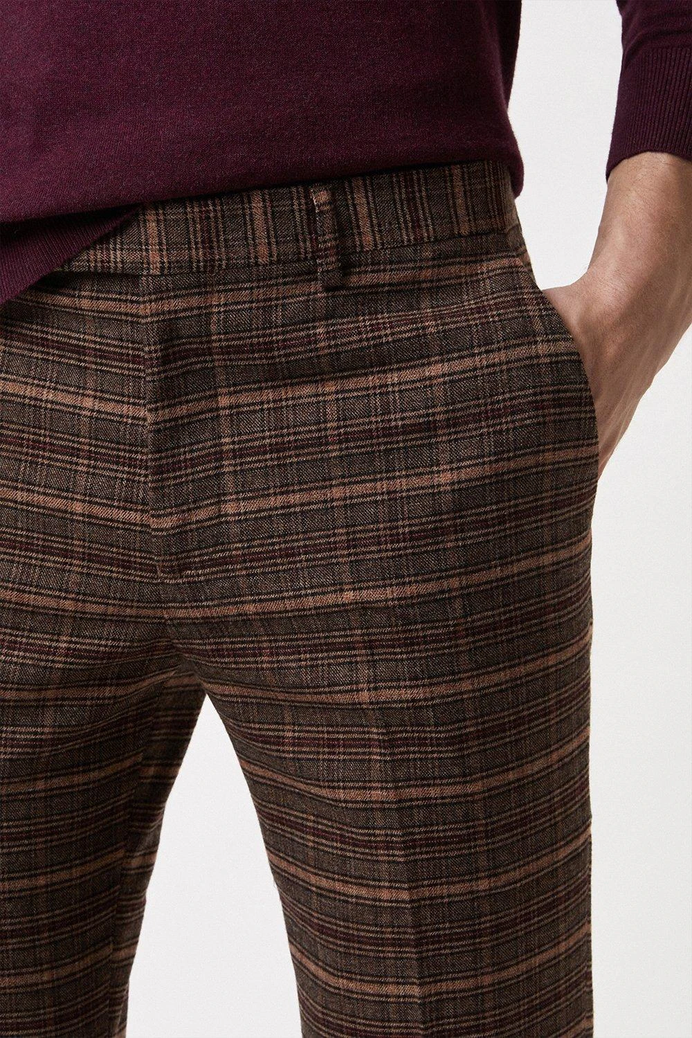 Established back in 1904, we’ve been providing you with great British style and timeless tailoring ever since. Featuring single and double breasted styles as well as classic and modern fits and patterns, our collection of mens suits will keep you on-trend with sharp tailoring, from season to season.Whether you’re suiting up for important meetings or you’ve got a special occasion coming up, we’ve got you sorted.Style: Slim Fit Brown Check Suit TrouserFit: SlimLength: Approx. 77cmDesign: Pockets, Hook, Bar And Zip Fly