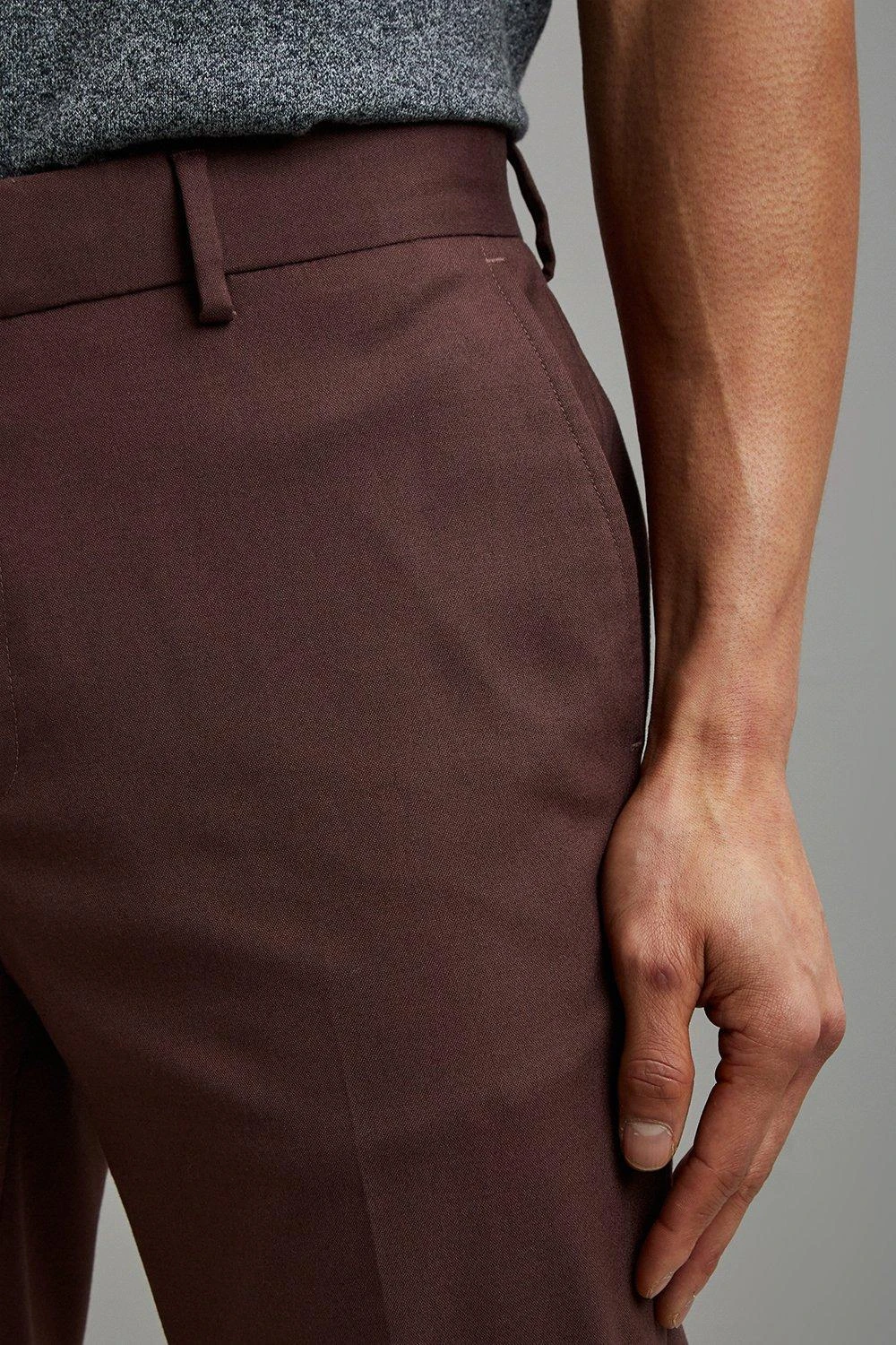 Part of our main range of suits, this suit trouser comes in a peppercorn colourway and a perfect slim fit. Featuring belt loops and functional side pockets.Style: Slim Fit Brown TrouserLength: Approx. Inside Leg 78cmFit: Slim FitIdeal for: SmartDesign: Hook, Bar And Zip Fastenong, Side Pockets, Belt Loops,