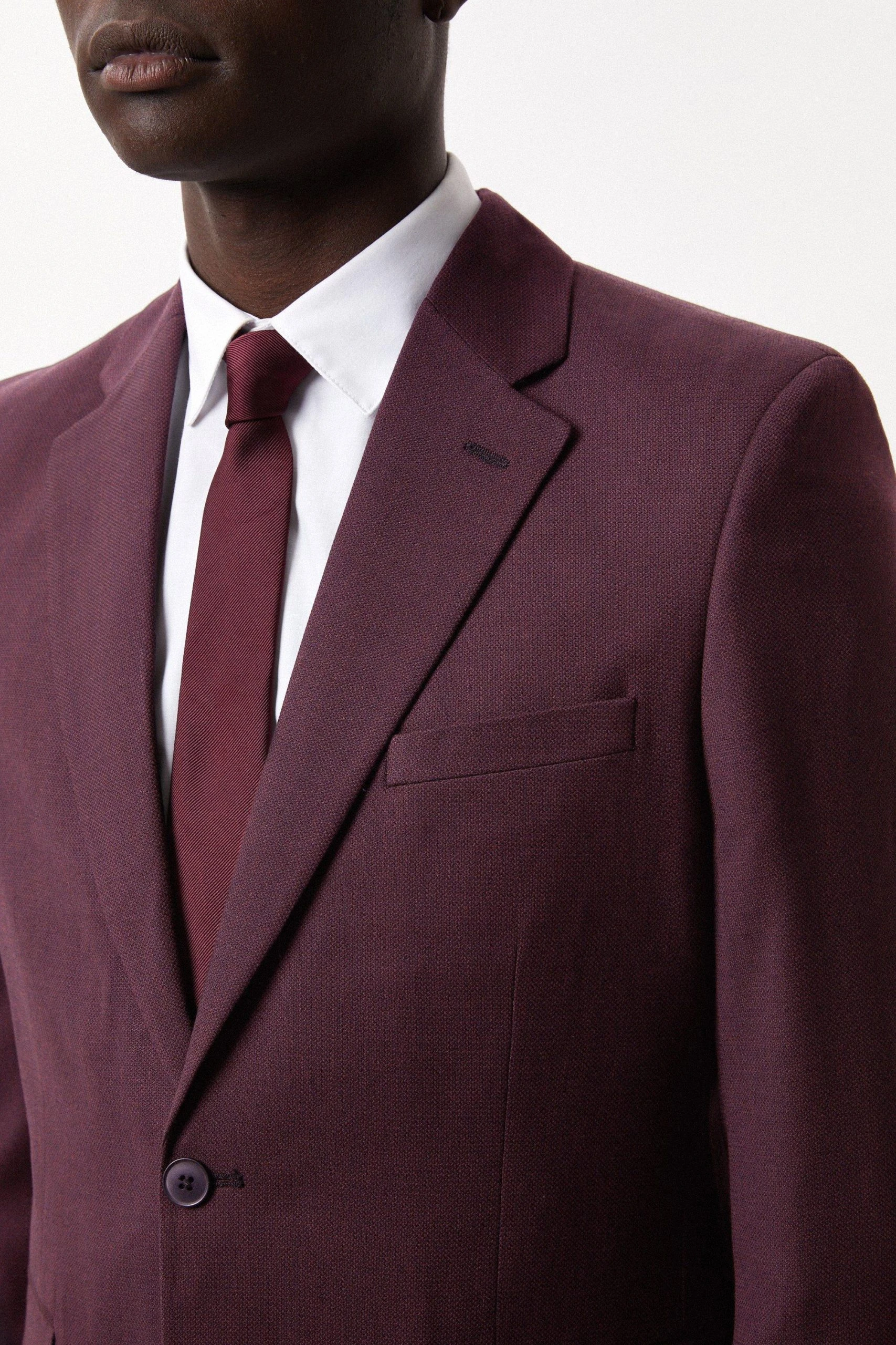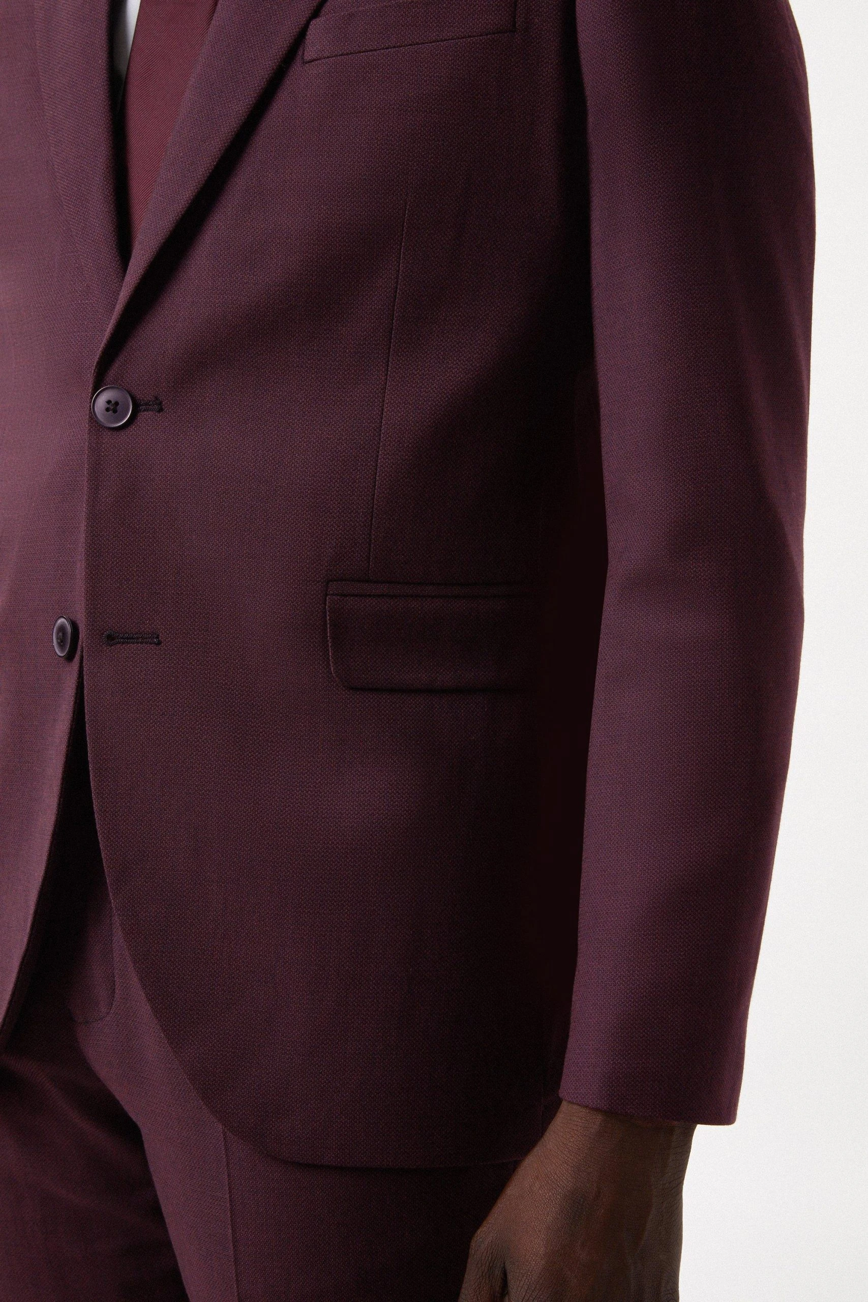 Established back in 1904, we’ve been providing you with great British style and timeless tailoring ever since. Featuring single and double breasted styles as well as classic and modern fits and patterns, our collection of mens suits will keep you on-trend with sharp tailoring, from season to season.Whether you’re suiting up for important meetings or you’ve got a special occasion coming up, we’ve got you sorted.Style: Slim Fit Burgundy Micro Texture Suit JacketLength: Approx. 75cmFit: SlimIdeal for: SmartDesign: Textured Fabric