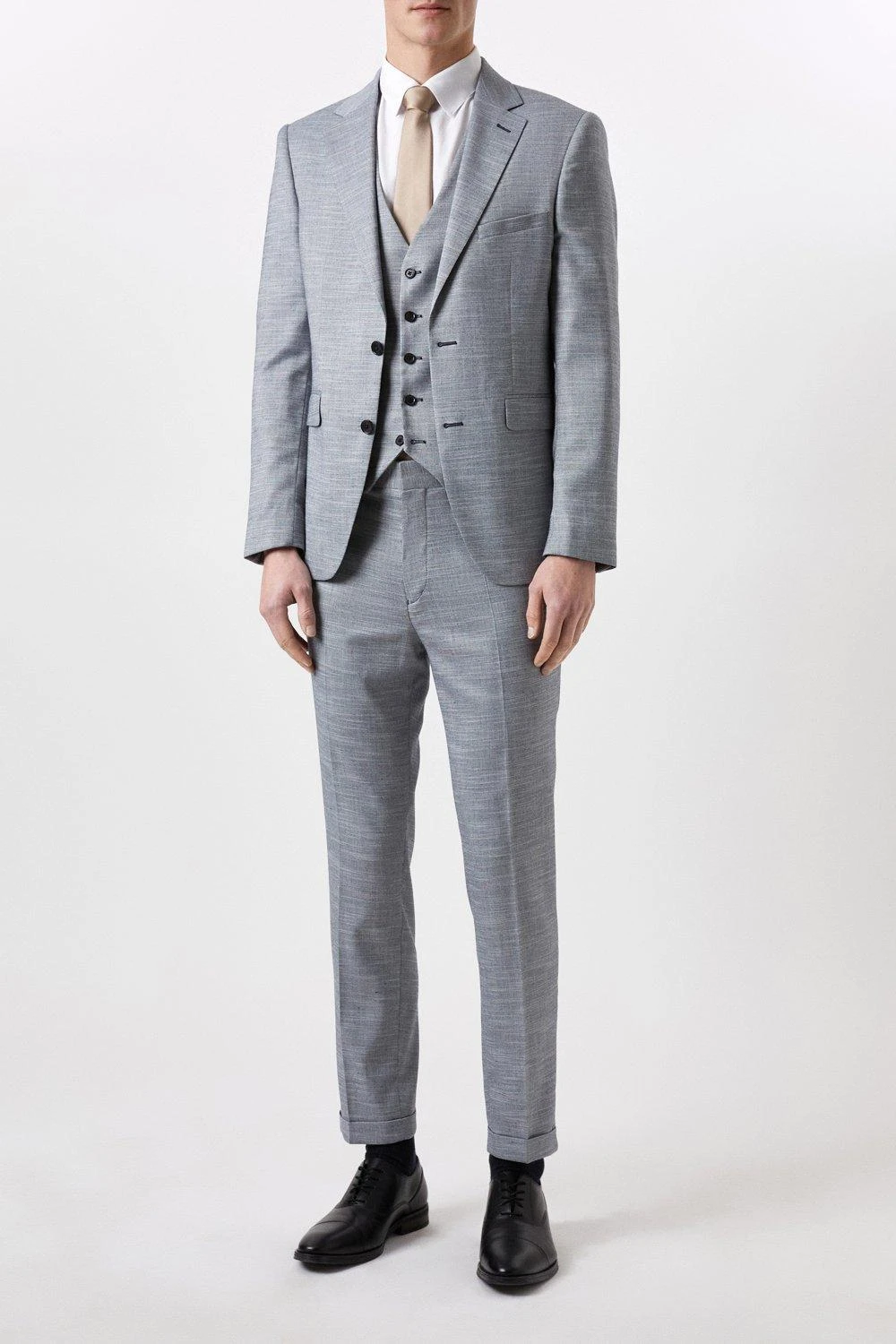 Established back in 1904, we’ve been providing you with great British style and timeless tailoring ever since. Featuring single and double breasted styles as well as classic and modern fits and patterns, our collection of mens suits will keep you on-trend with sharp tailoring, from season to season. Whether you’re suiting up for important meetings or you’ve got a special occasion coming up, we’ve got you sorted. Style: Slim Fit Chambray Blue Slub Suit Jacket. Ideal for: Smart. Fit: Slim. Design: Single Button. Model wears size UK 10 and is 5′ 9″ tall.