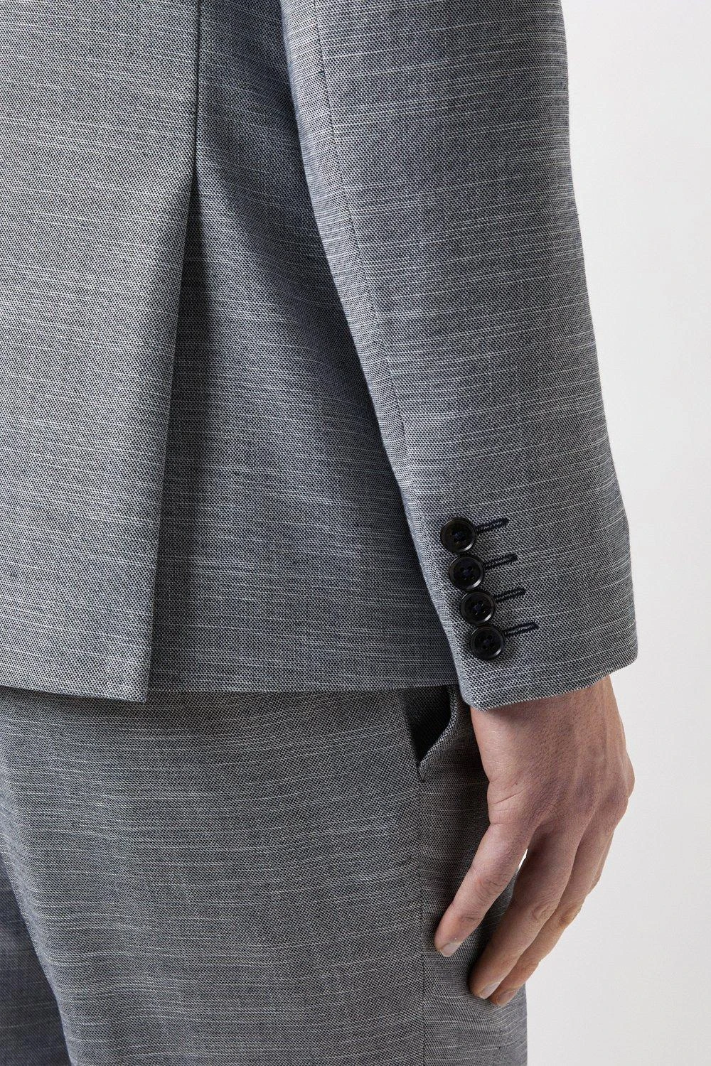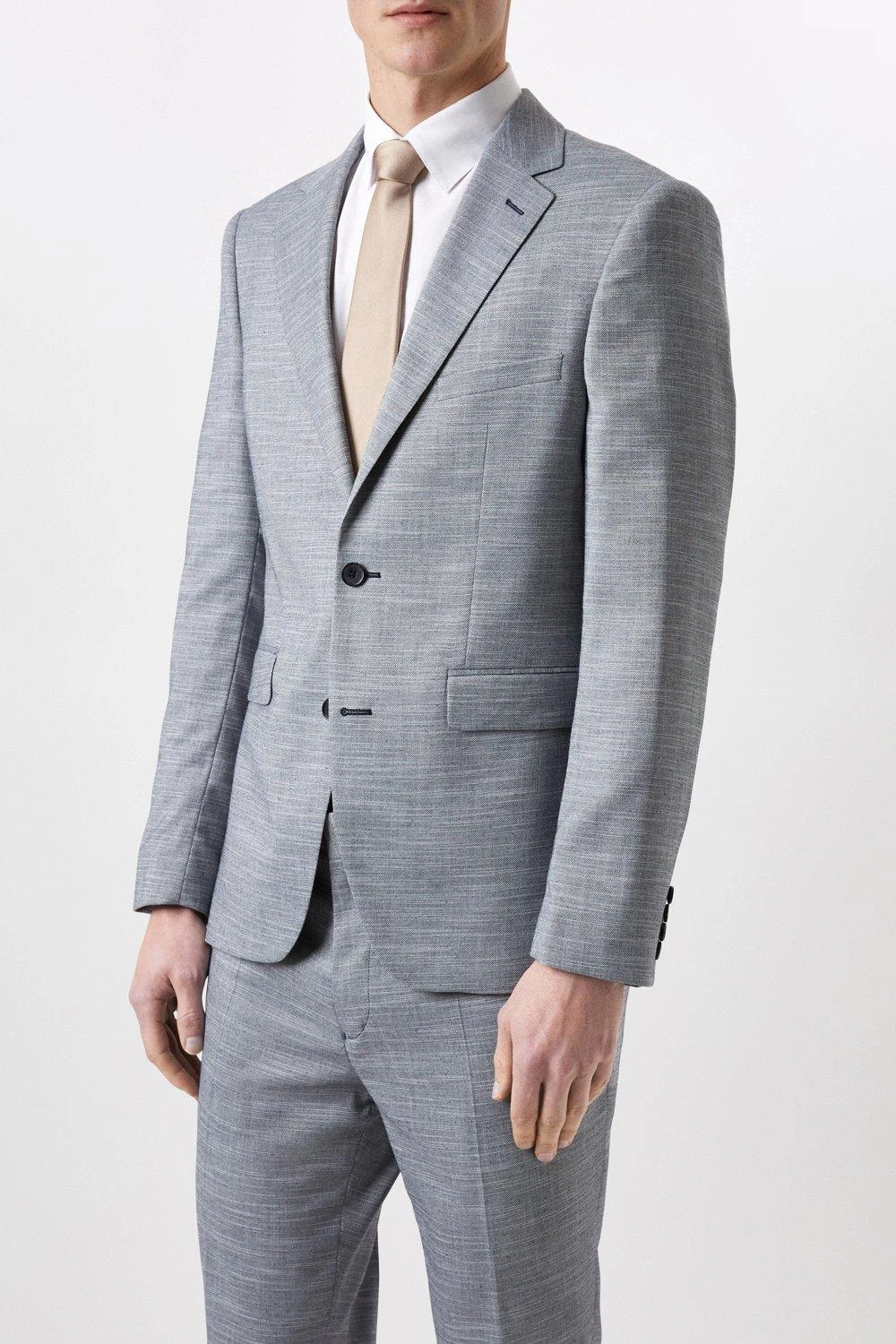 Burton Slim Fit Chambray Blue Slub Suit Jacket
