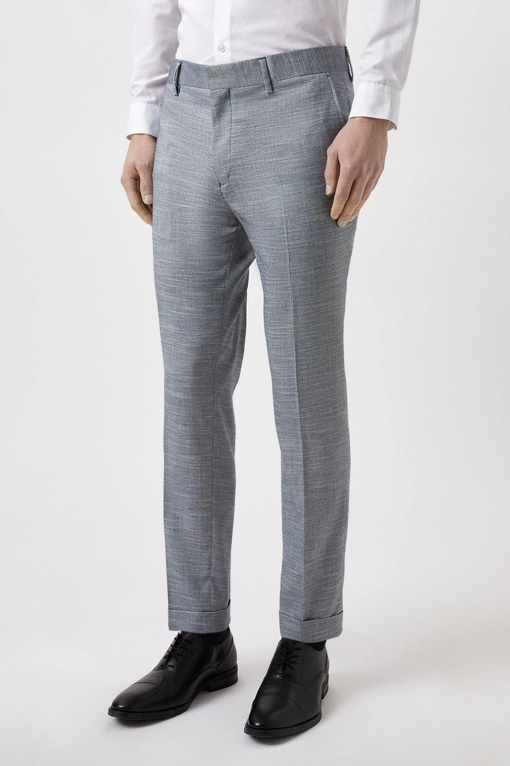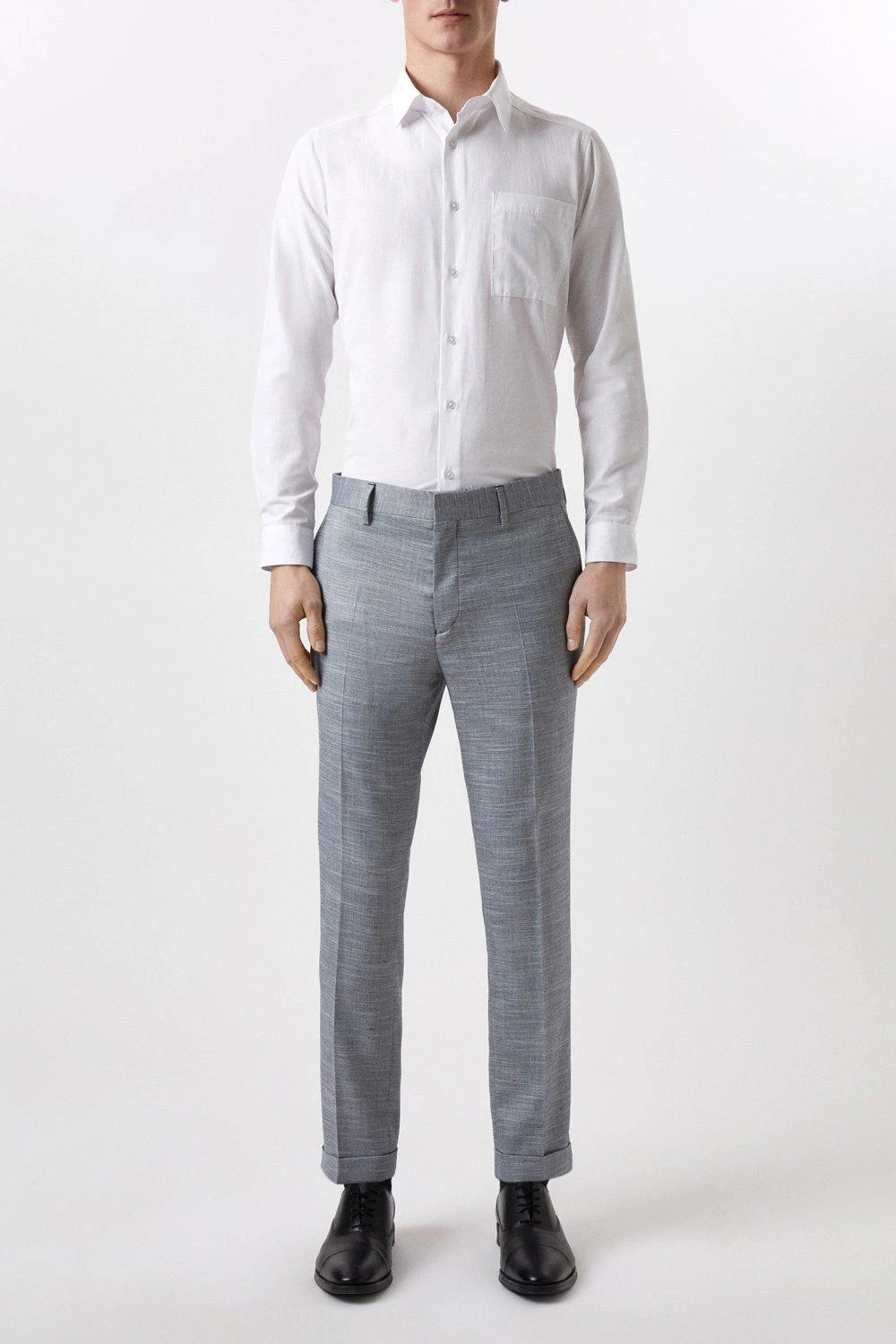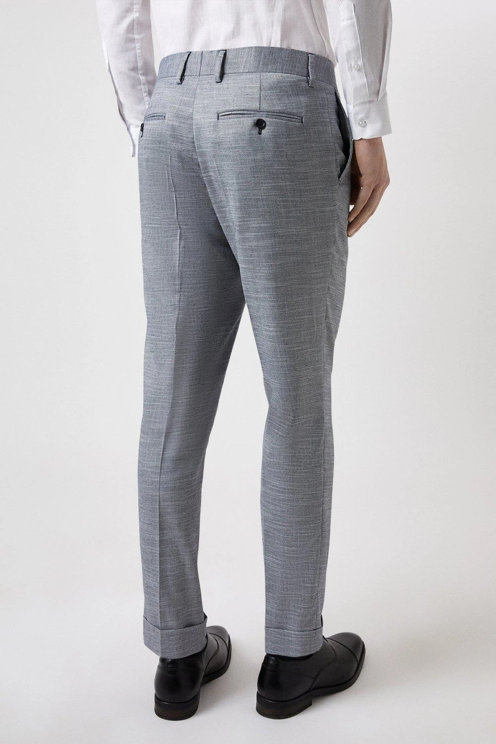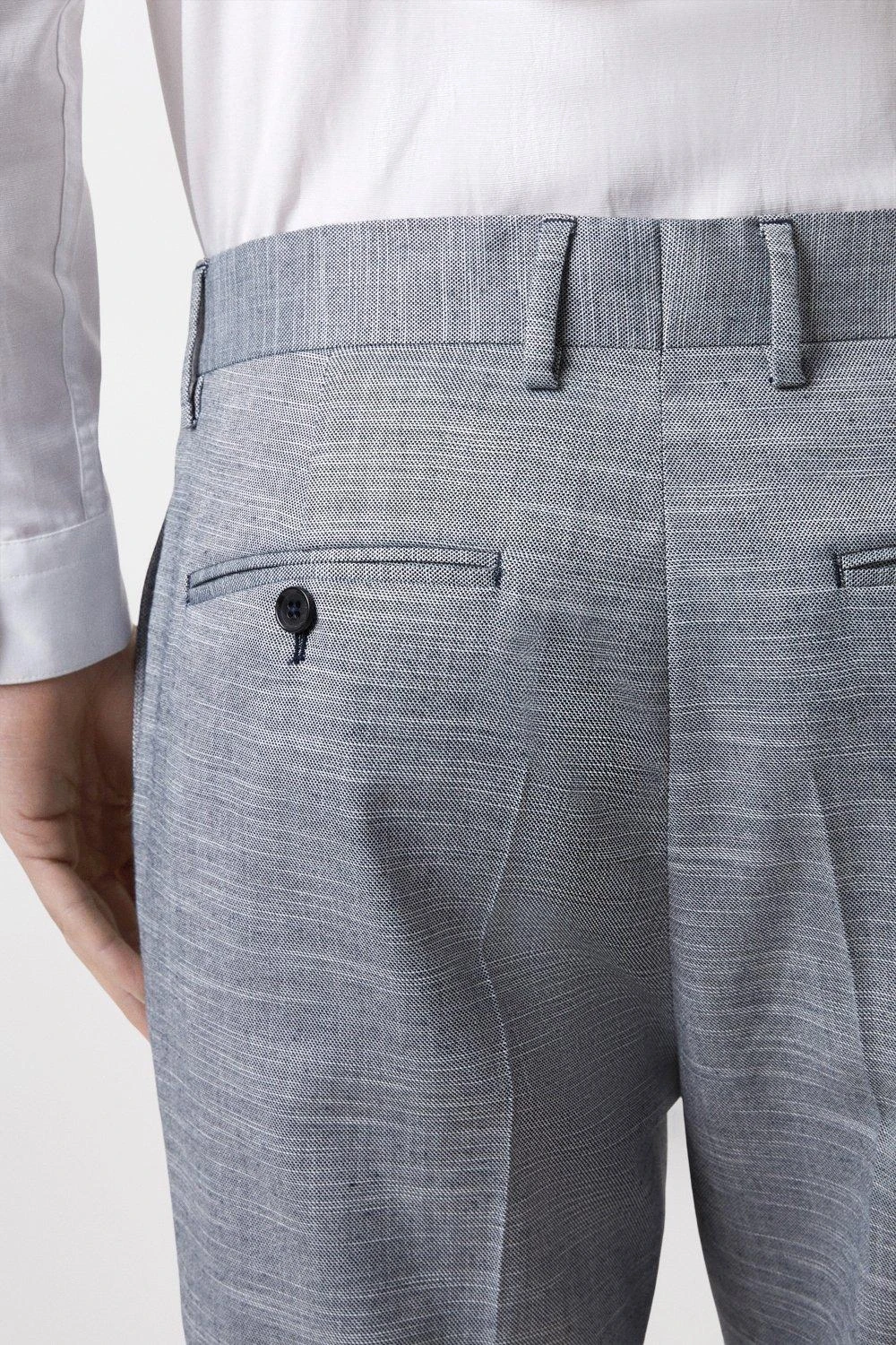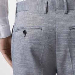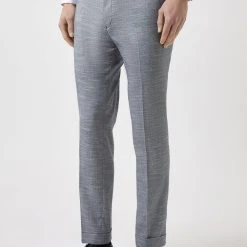 Established back in 1904, we’ve been providing you with great British style and timeless tailoring ever since. Featuring single and double breasted styles as well as classic and modern fits and patterns, our collection of mens suits will keep you on-trend with sharp tailoring, from season to season. Whether you’re suiting up for important meetings or you’ve got a special occasion coming up, we’ve got you sorted. Style: Slim Fit Chambray Blue Slub Suit Trousers. Ideal for: Smart. Fit: Slim. Design: Single Button. Model wears size UK 10 and is 5′ 9″ tall.