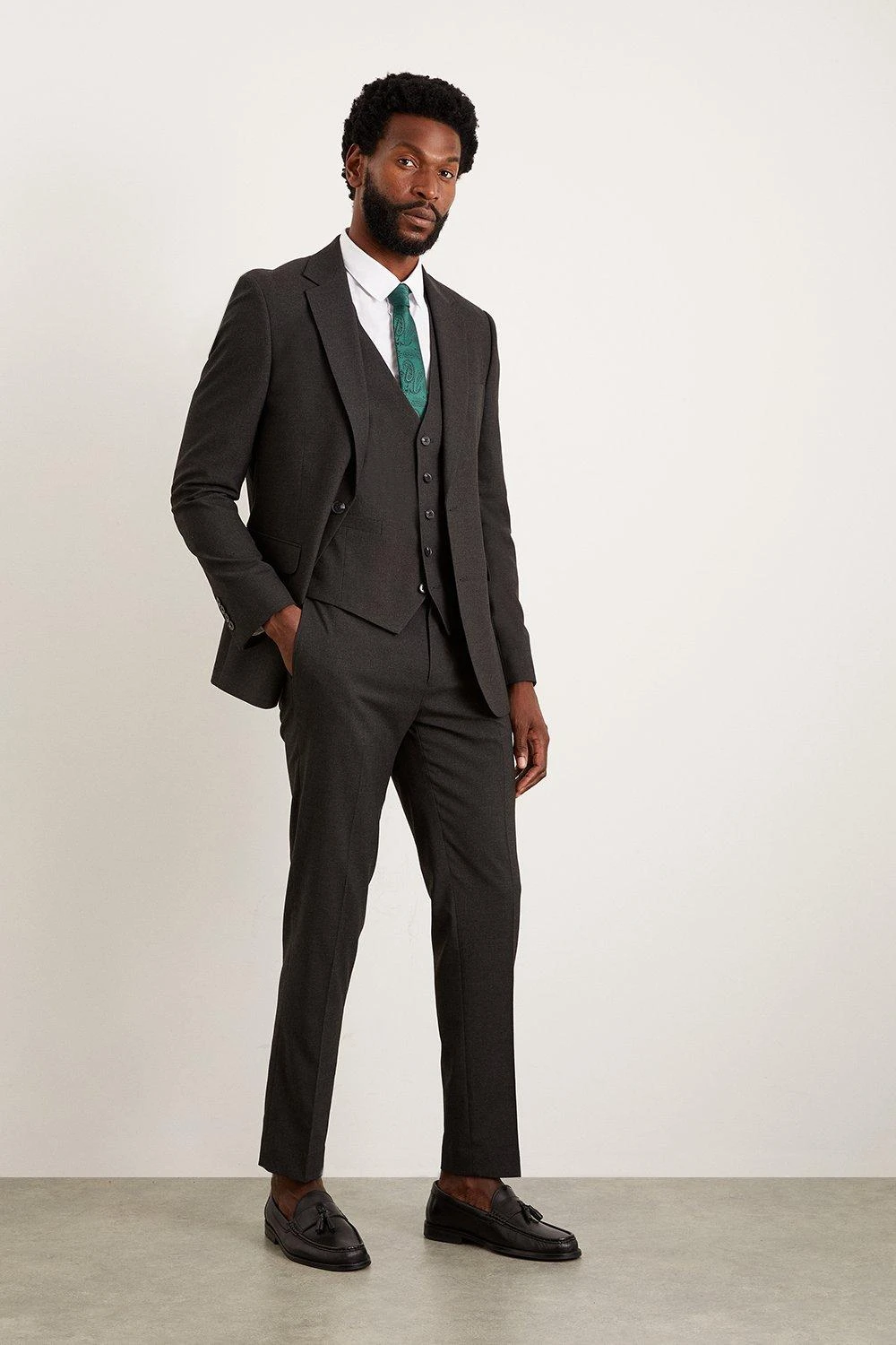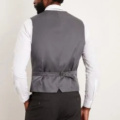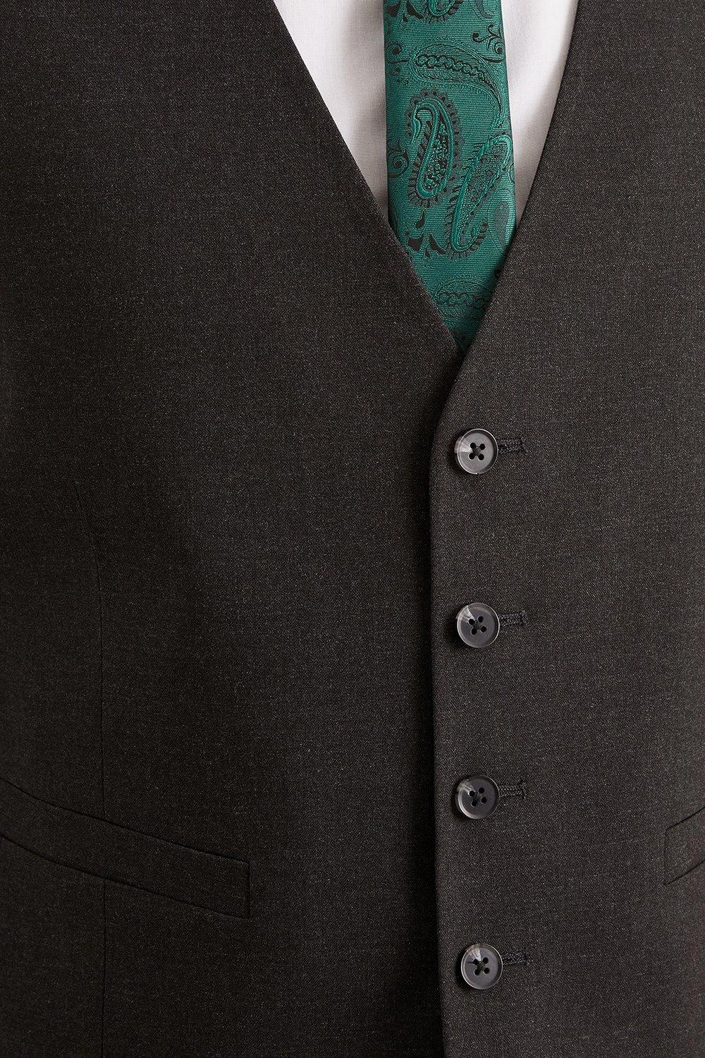 Established back in 1904, we’ve been providing you with great British style and timeless tailoring ever since. Featuring single and double breasted styles as well as classic and modern fits and patterns, our collection of mens suits will keep you on-trend with sharp tailoring, from season to season. Whether you’re suiting up for important meetings or you’ve got a special occasion coming up, we’ve got you sorted. Style: Slim Fit Charcoal Essential Waistcoat. Ideal for: Smart. Fit: Slim. Design: Plain. Model wears size UK 10 and is 5′ 9″ tall. This garment is READY FOR THE FUTURE.Recycled fibres can be used for a number of materials including polyester, cotton and acrylic. They are a more sustainable alternative, as they take less energy, land and water to make than virgin fibres, and are often derived from products that would otherwise have gone to wasteFind out more about our sustainability guidelines and goals.