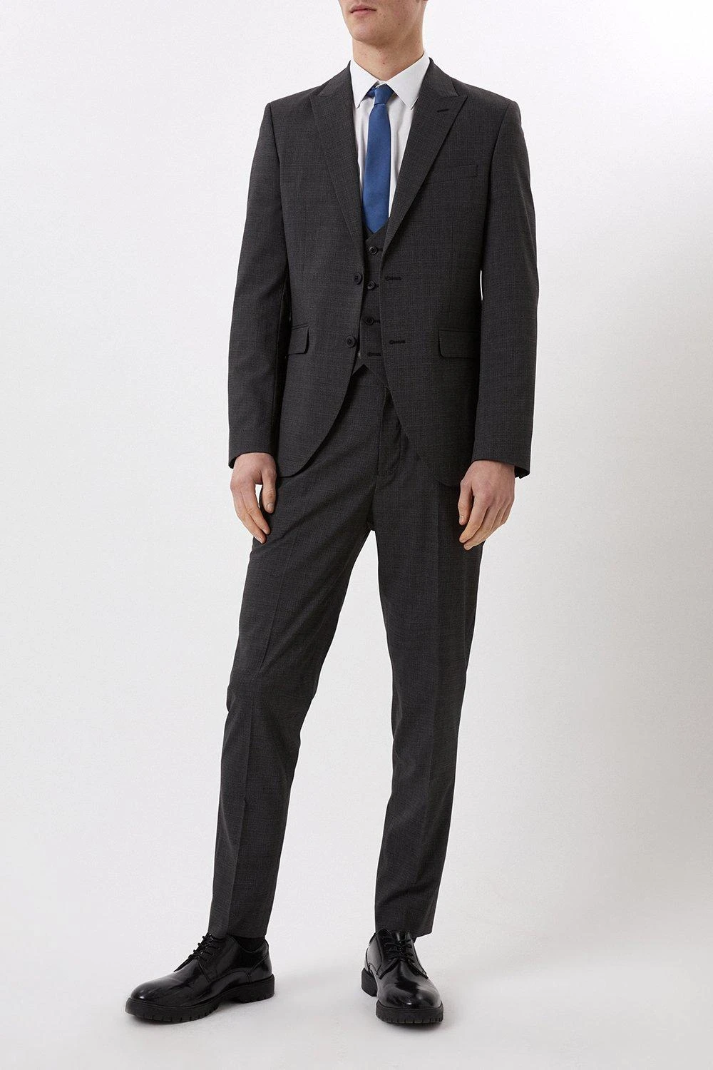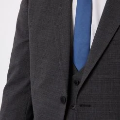 Established back in 1904, we’ve been providing you with great British style and timeless tailoring ever since. Featuring single and double breasted styles as well as classic and modern fits and patterns, our collection of mens suits will keep you on-trend with sharp tailoring, from season to season. Whether you’re suiting up for important meetings or you’ve got a special occasion coming up, we’ve got you sorted. Style: Slim Fit Charcoal Semi Plain Suit Jacket. Ideal for: Smart. Fit: Slim. Design: Single Button. Model wears size UK 10 and is 5′ 9″ tall.