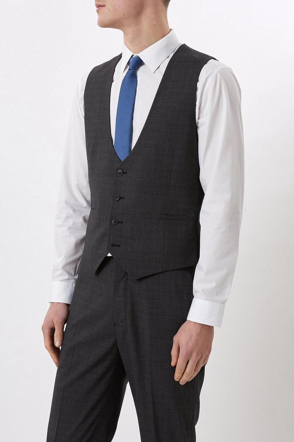 Burton Slim Fit Charcoal Semi Plain Waistcoat