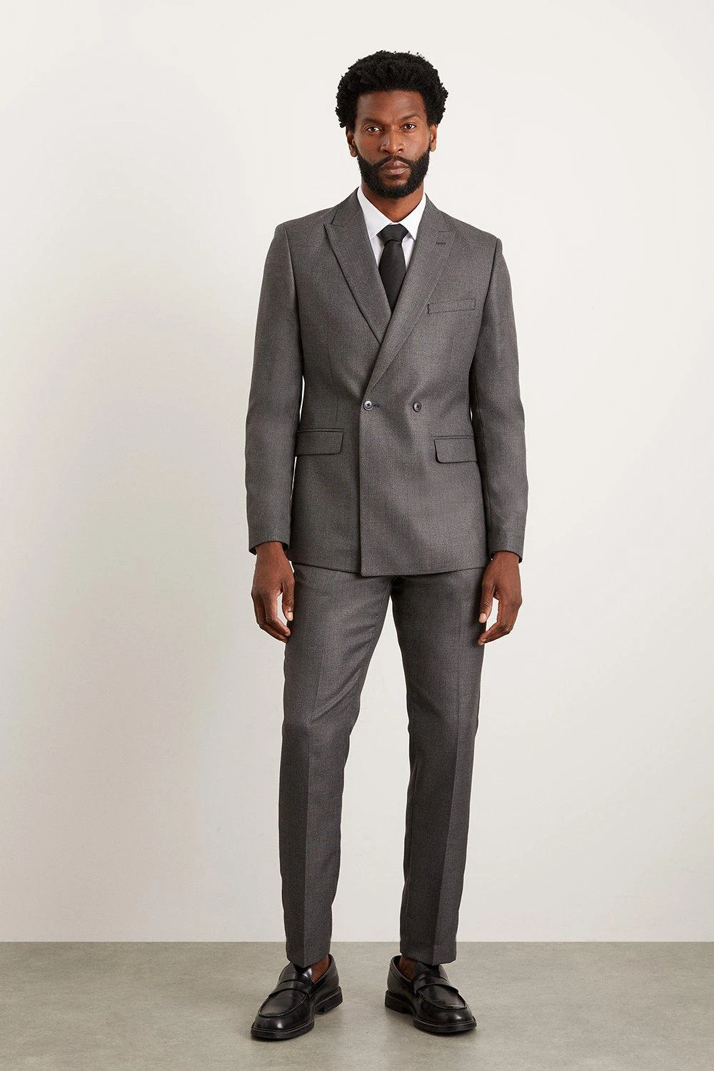 Burton Slim Fit Charcoal Wide Self Stripe Suit Trousers