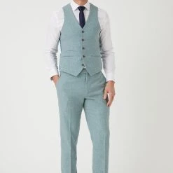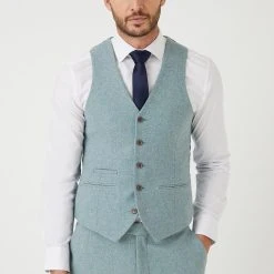 Burton Slim Fit Green Tweed Suit Waistcoat